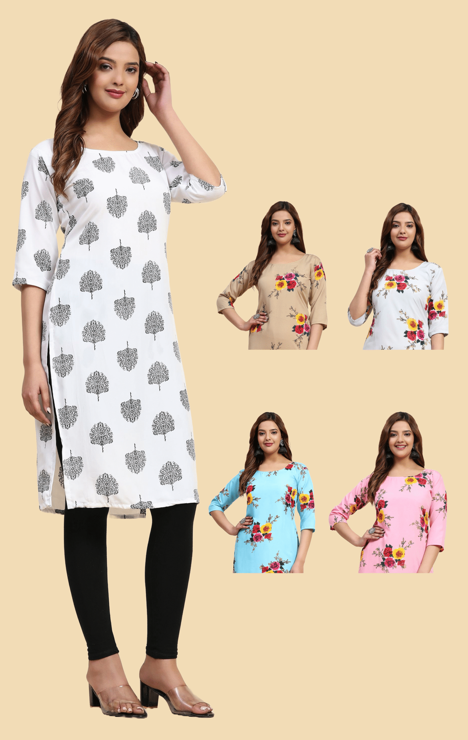Explore the richness of Indian dresses designed to perfection, blending traditional craftsmanship with contemporary styles. Our vast selection caters to every aspect of the desi wardrobe, ensuring you find the perfect ensemble for any occasion. Elevate your style with our Crepe Kurtas, adding a touch of sophistication to your daily wardrobe, or opt for our stunning Kurti combos for a versatile and trendy look.