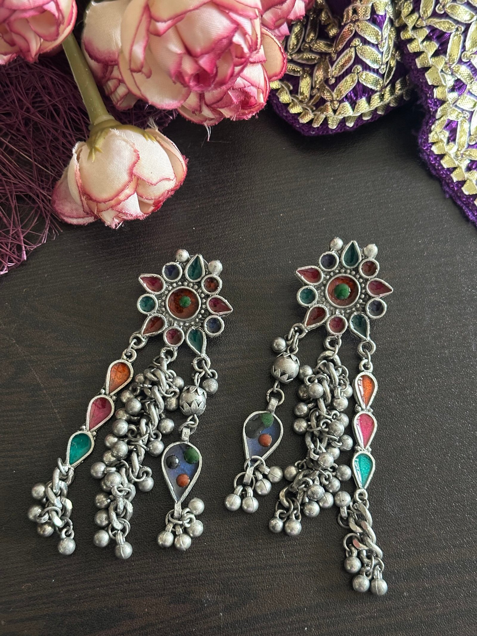 Afgahni style oxidized lightweight dangler with beautiful floral design