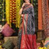 Banarasi Zik Zak Grey Printed Silk Saree