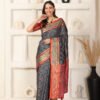 Banarasi Hathi Grey Printed Silk Saree