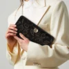 Crafted in a exclusive lazer cut on leather, this zip around purse is as ellegant as its functional. The superbly well-organized interior includes a full complement for all your essential needs.