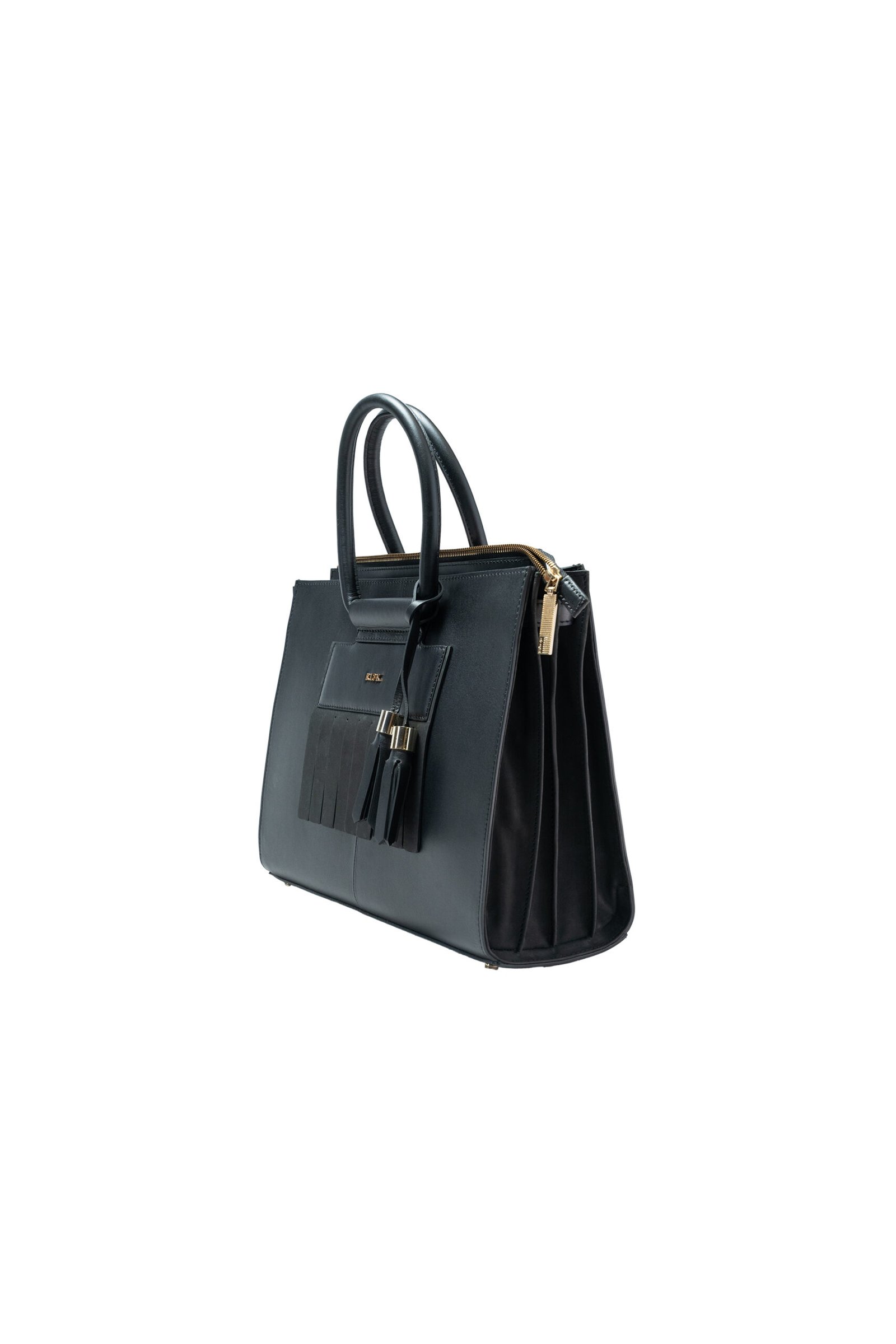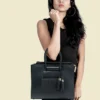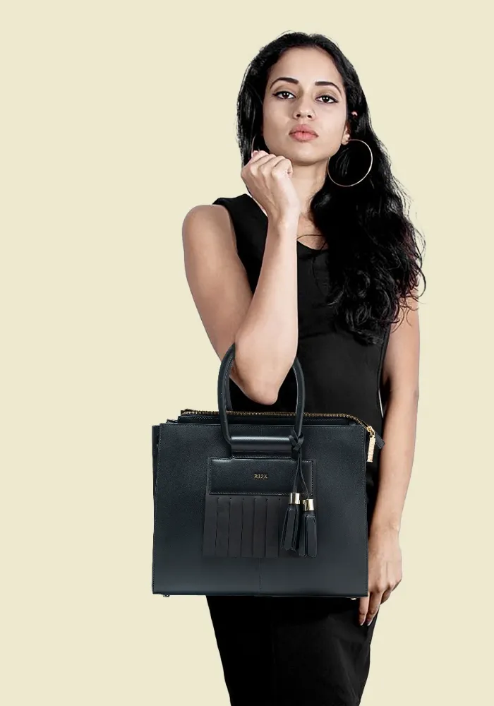 RI2K Black leather tote bag is a chic and sophisticated accessory. Crafted from high-quality leather with its timeless design and durability, it adds a touch of luxury to any outfit.