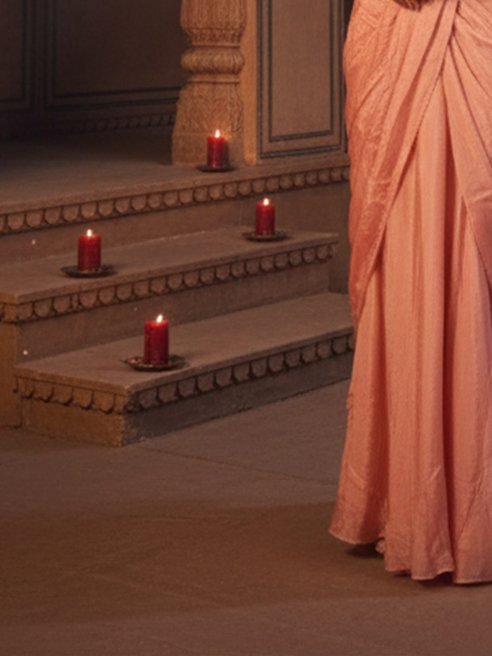 Style this saree with kundan, pearl, or diamond jewellery, a sleek low bun or soft waves, and nude or rosy makeup. Complete the look with metallic heels or embellished sandals for a sophisticated finish.