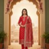Bright Red Traditional Unstitched Suit Set
