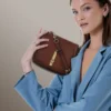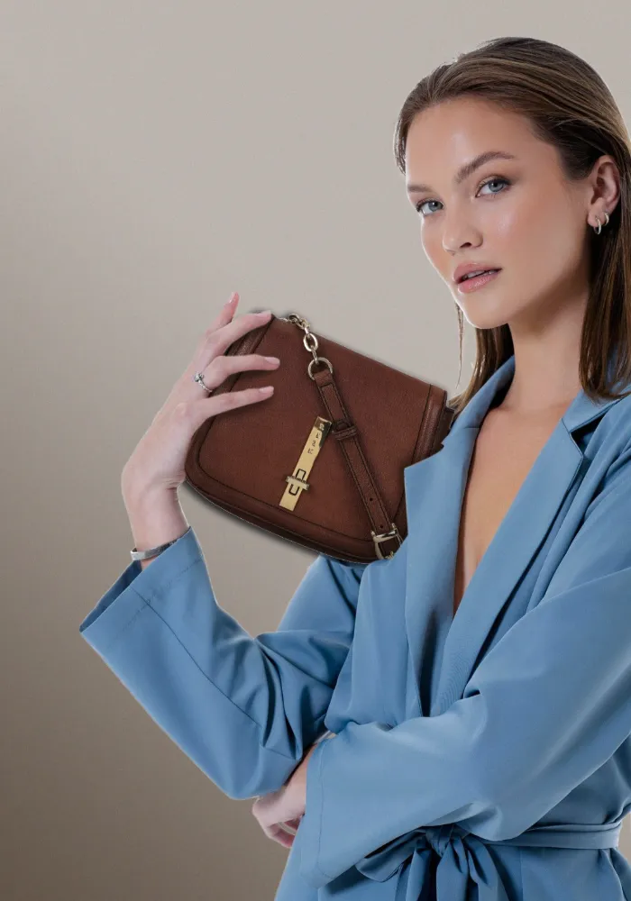 Style is reimagined in soft brown genuine leather with beautiful twist lock, this fabulous essential will lend a feminine touch to your every day needs. Our best seller acrossbody bag.