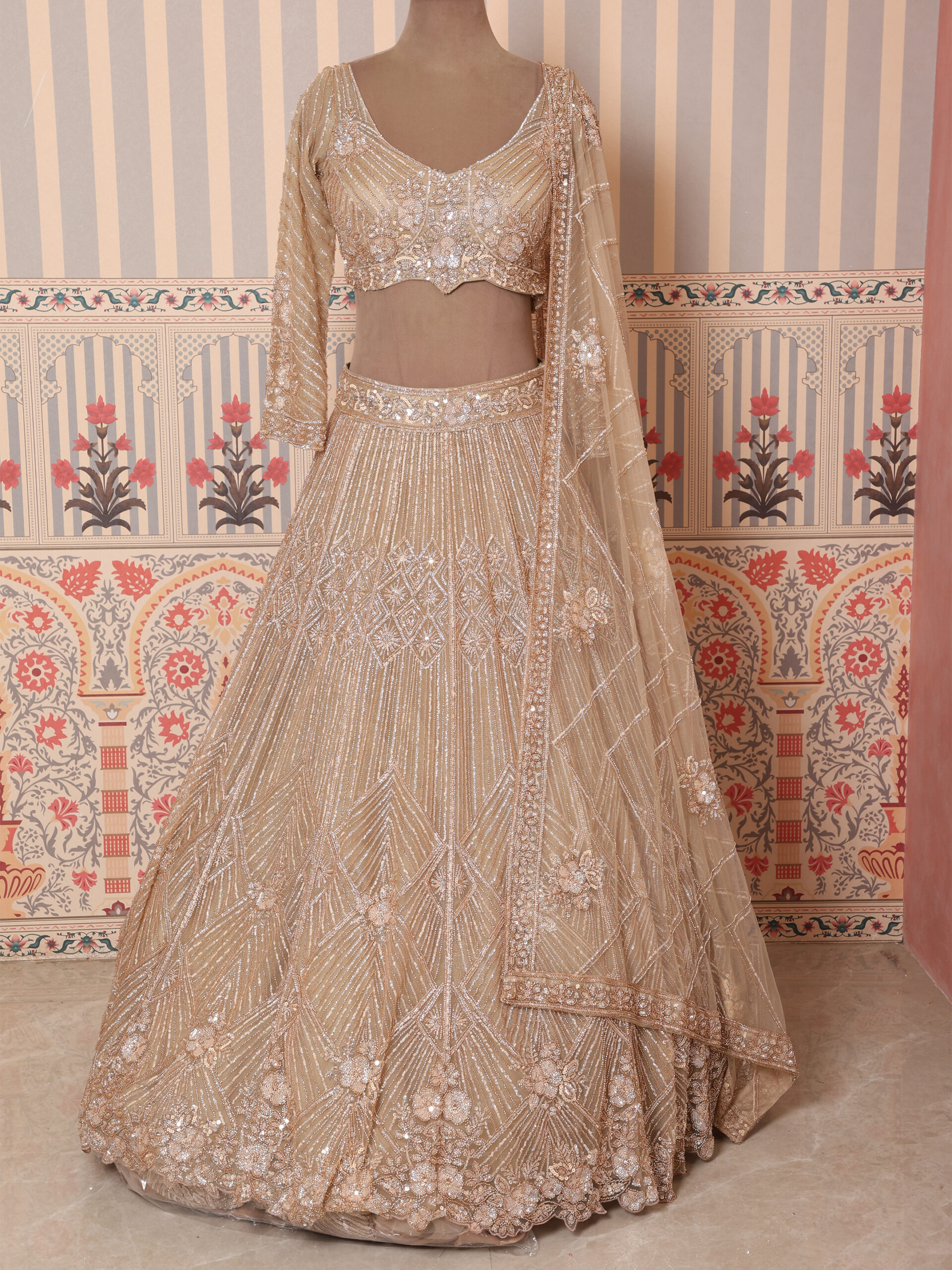 Be the first to review “Champagne Noor Hand-Embroidered Bridal Lehenga Set”