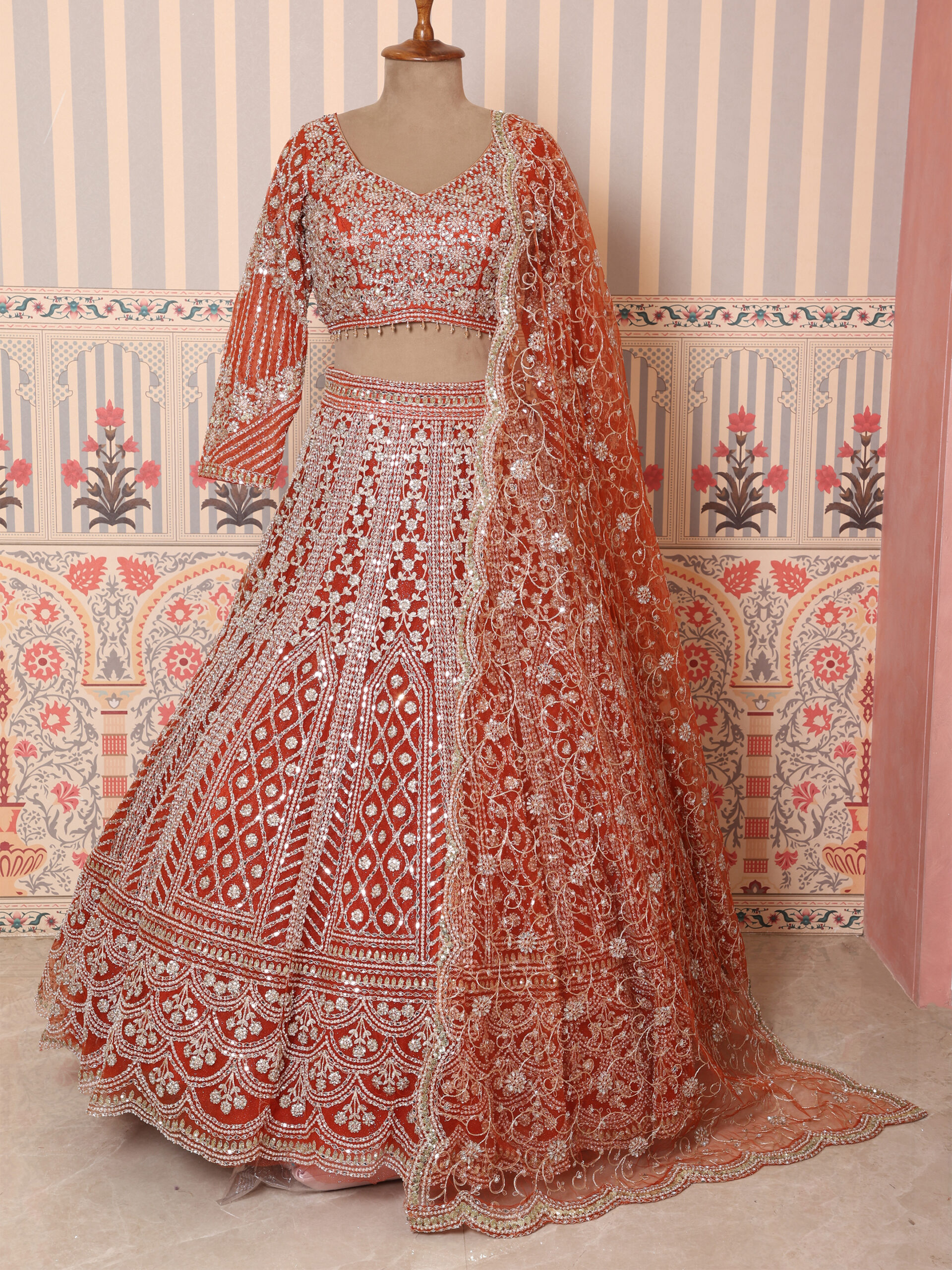 Ideal for wedding ceremonies, pheras, and grand receptions, this lehenga is designed for brides who desire a bold, traditional, and unforgettable bridal presence. Pair it with statement bridal jewelry to complete a truly royal look.