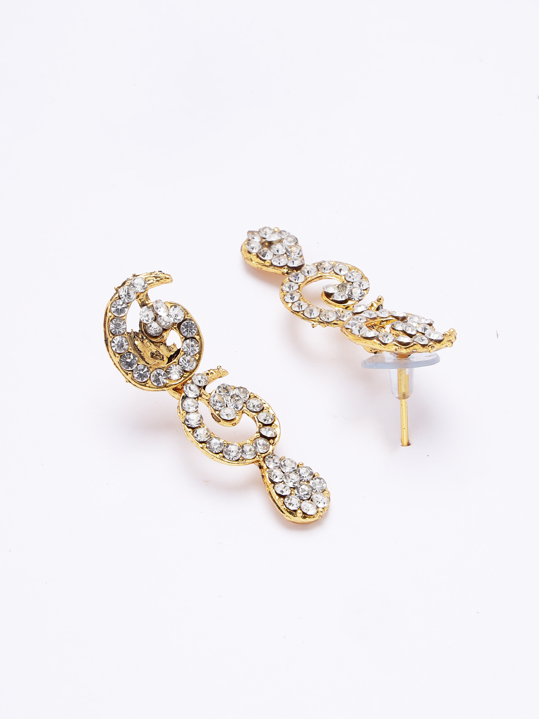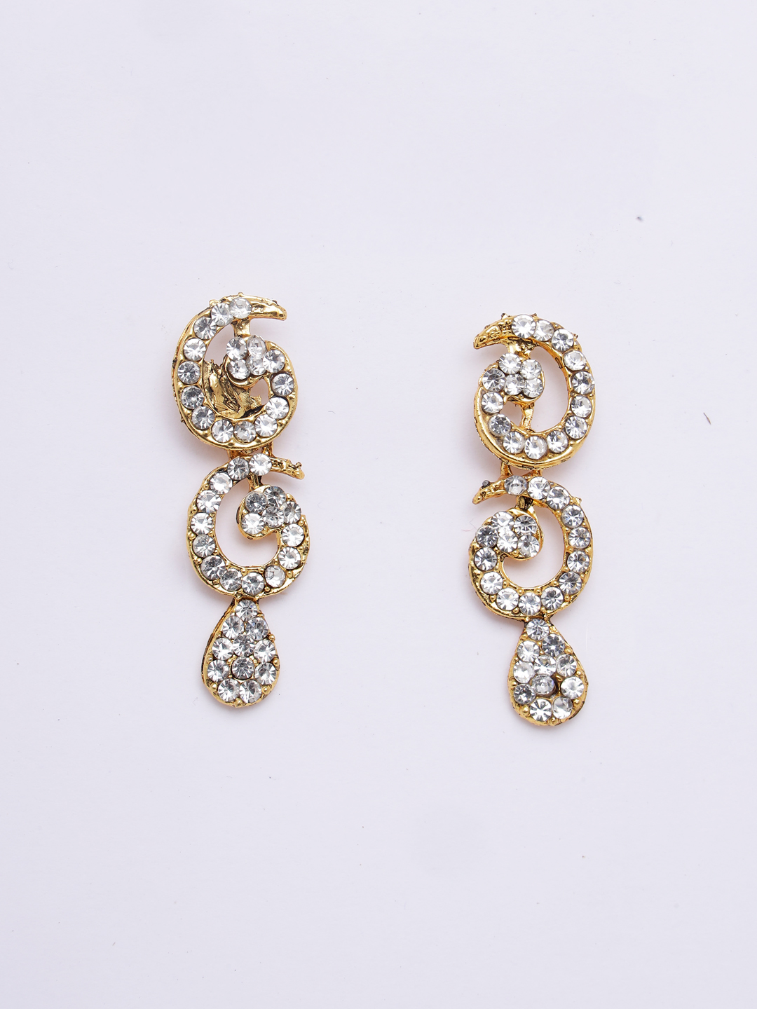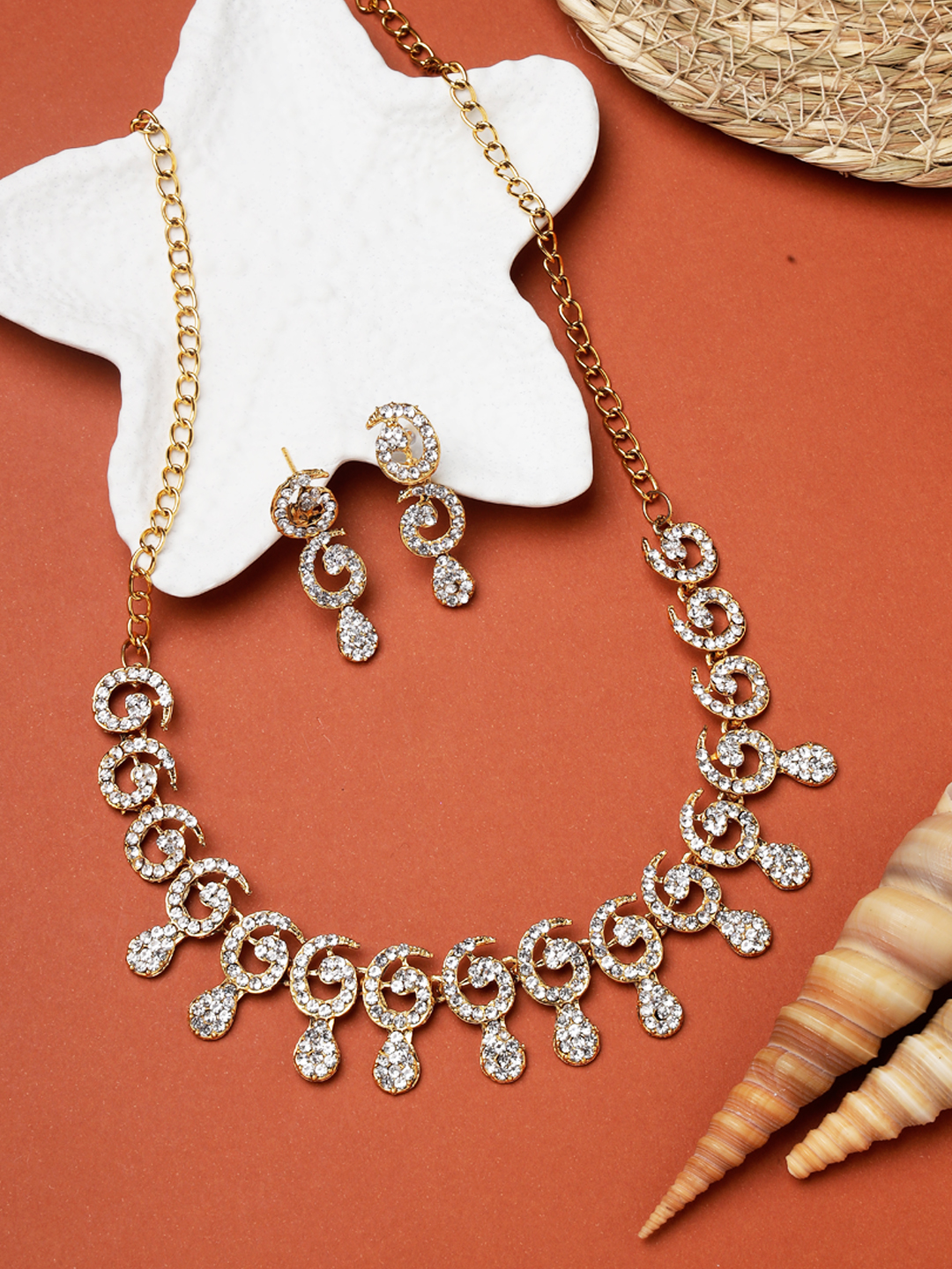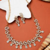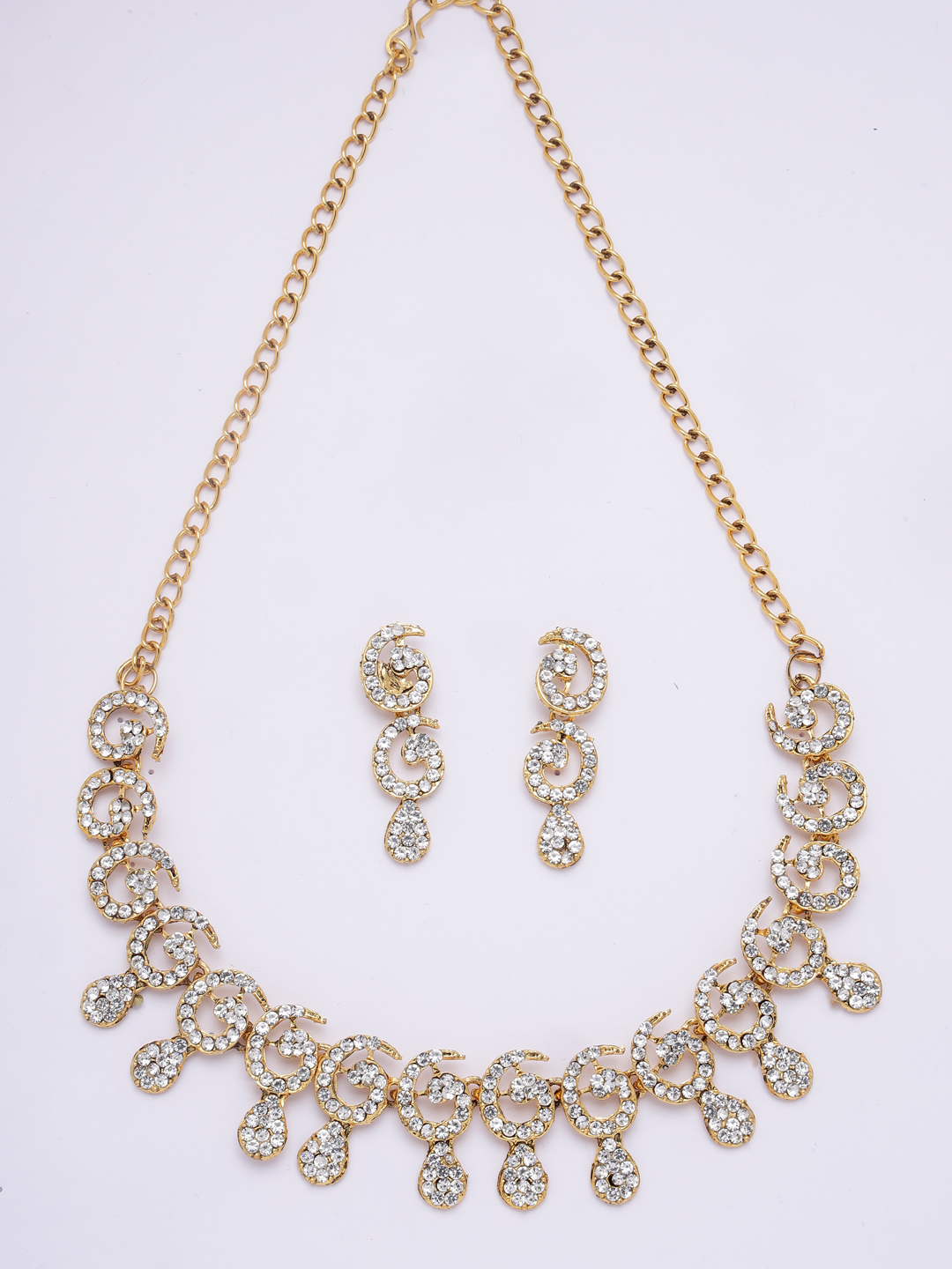Designer gold plated cubic zircornia stones studded necklace with paired earring, secured with s-hook closure, suitable for parties and gatherings