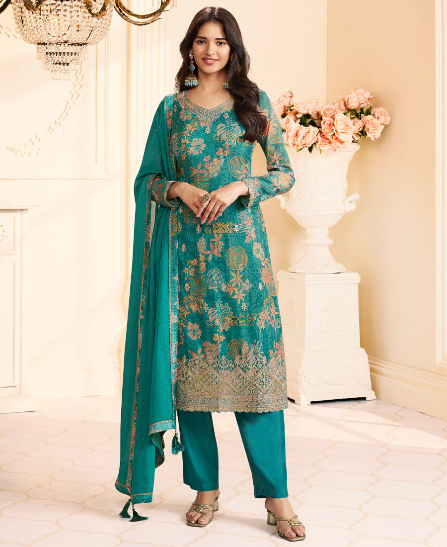 Designer Green Printed Straight Suit For Women