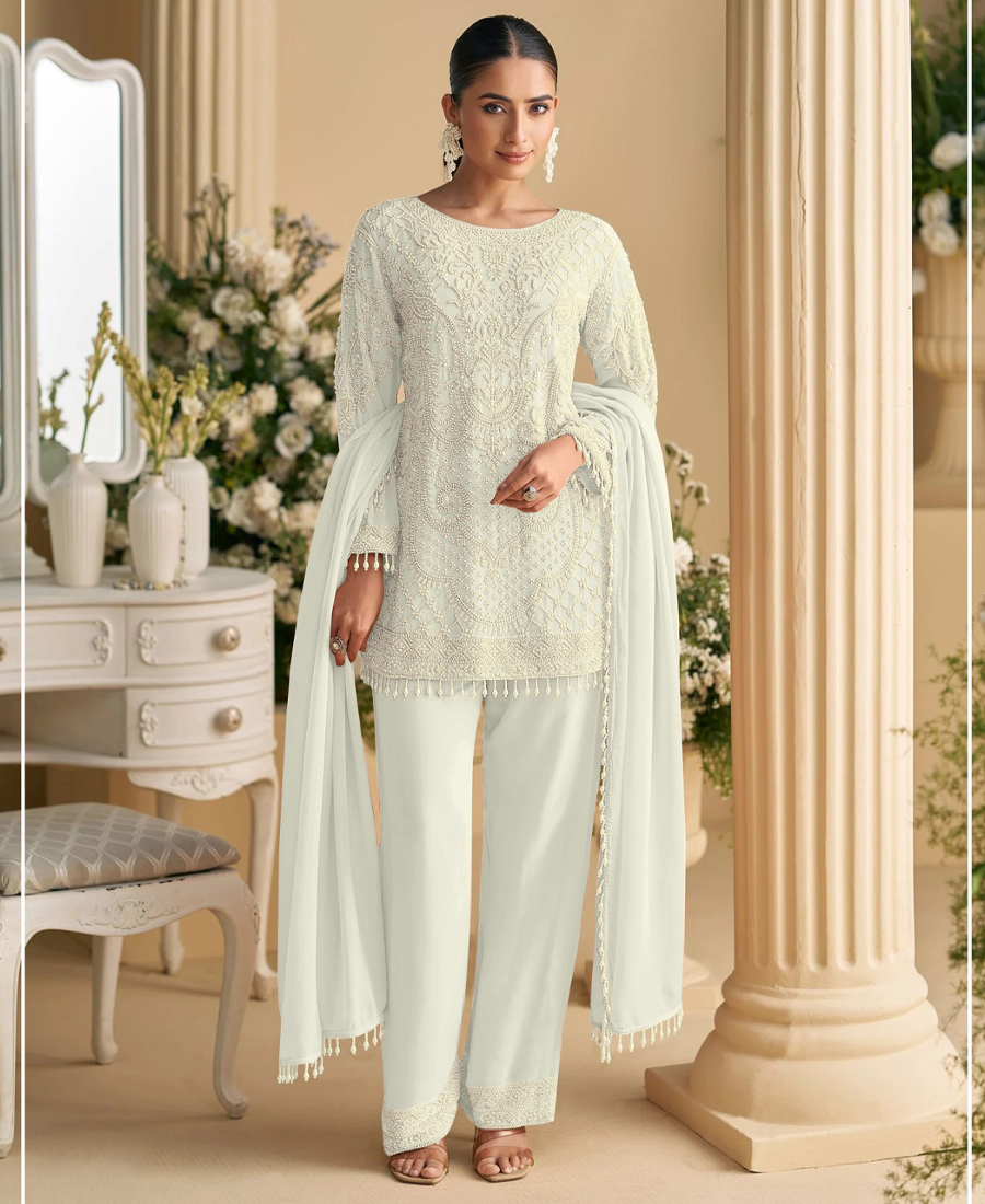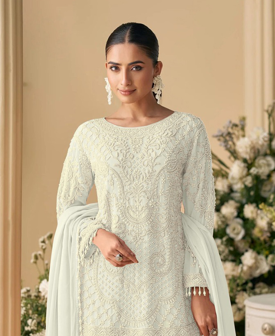 Designer Pakistani Style White Georgette Salwar Suit For Women Wedding Wear