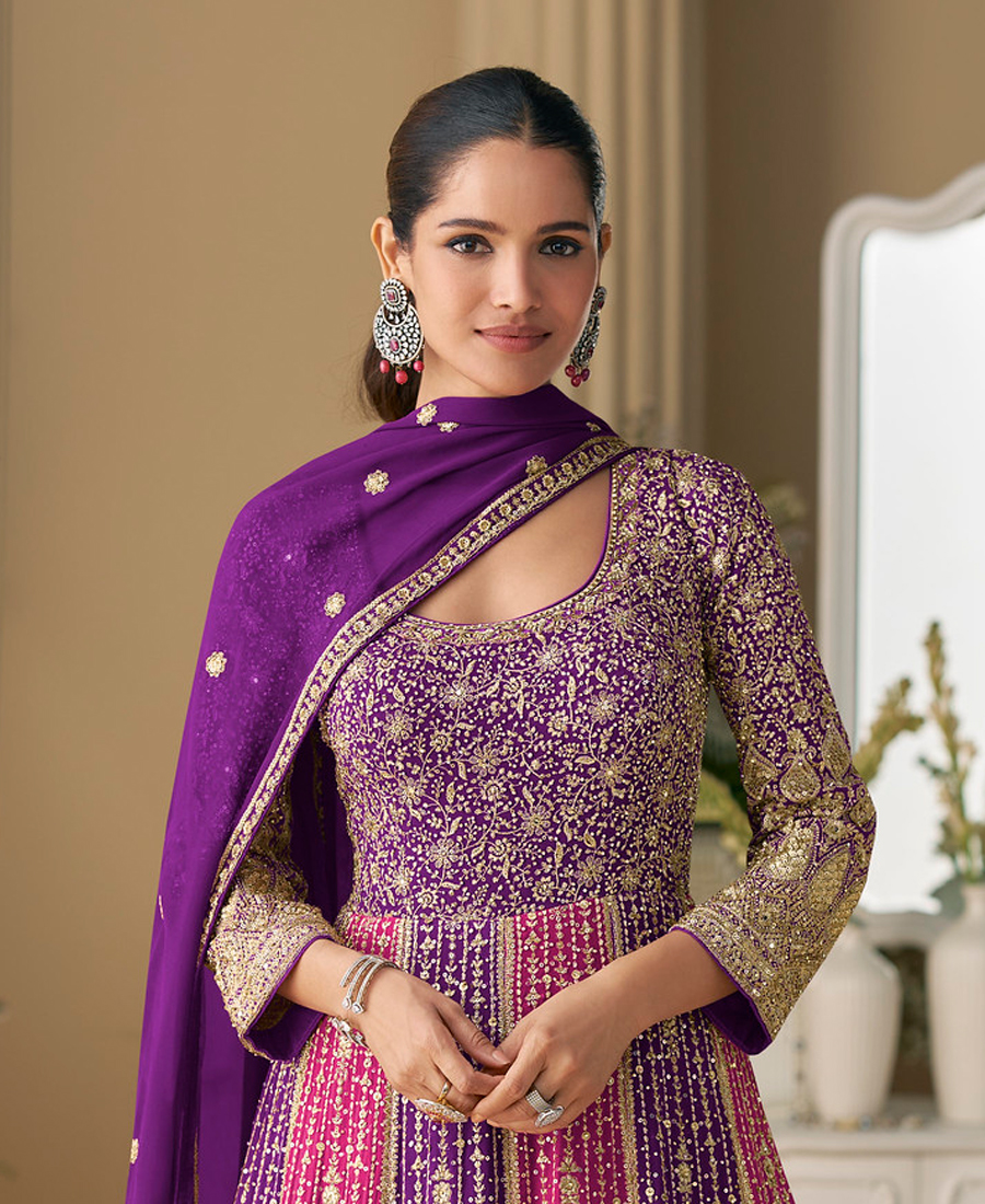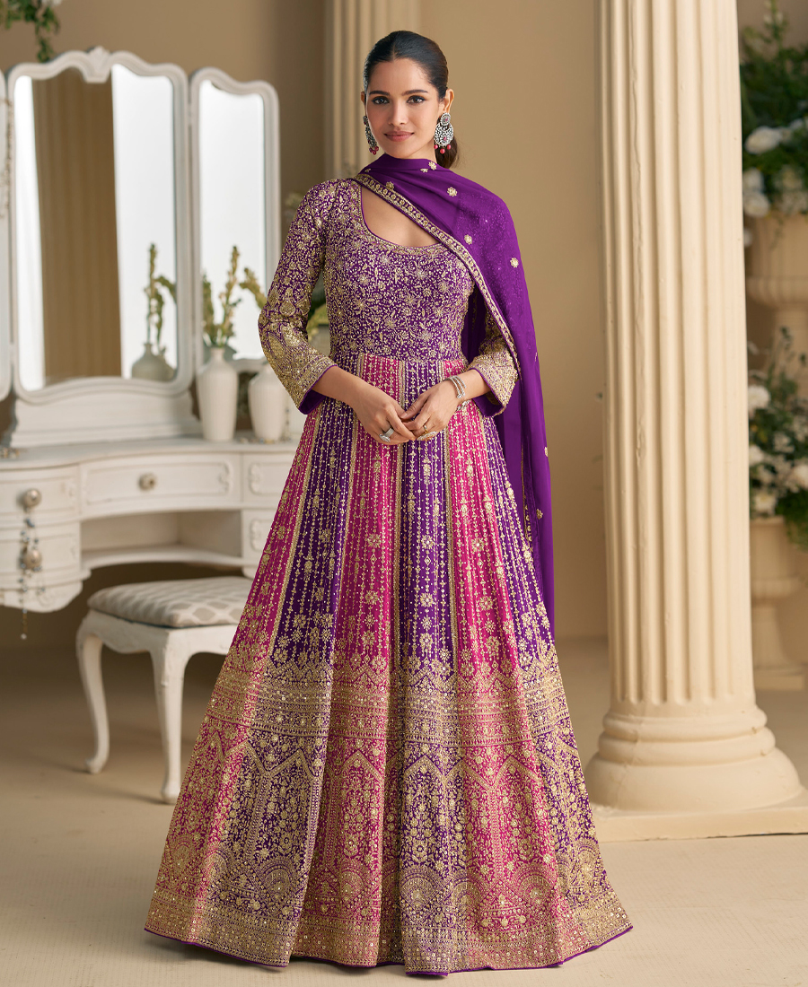 Designer Wedding Wear Bridal Anarkali For Women Purple