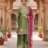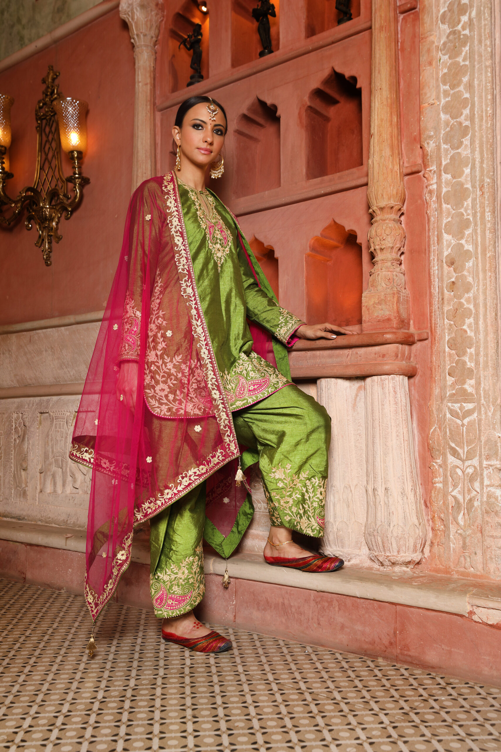 Colour: Olive Green Kurta & Palazzo | Rose-Pink Dupatta