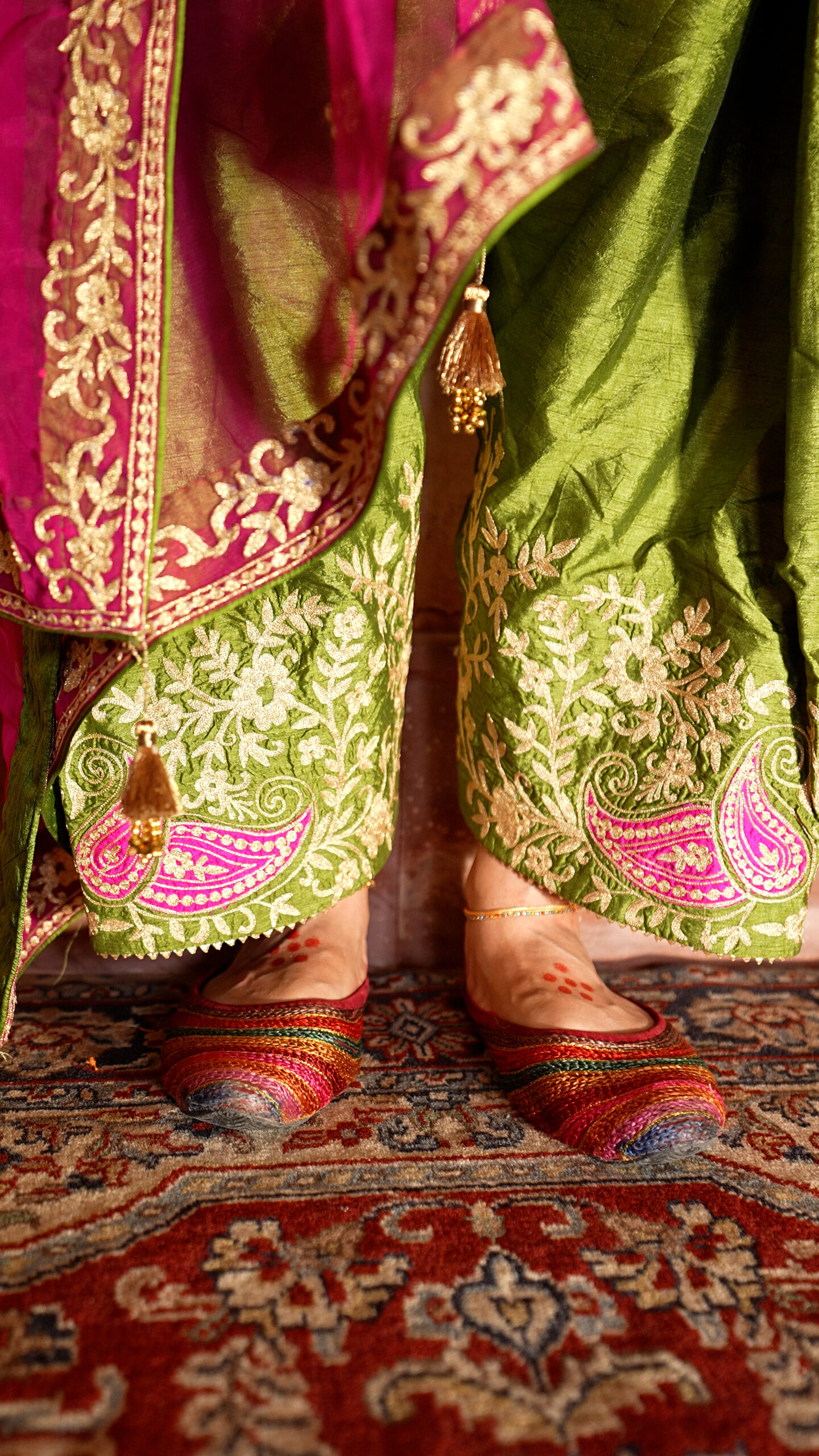 Sohni reflects timeless elegance with its earthy olive base and finely detailed embroidery inspired by traditional motifs. The beautifully embellished neckline, sleeves, and hem enhance the overall richness of the kurta, while the vibrant contrast dupatta adds festive depth. Ideal for celebrations, family gatherings, and cultural occasions, this ensemble offers comfort with a refined ethnic appeal.