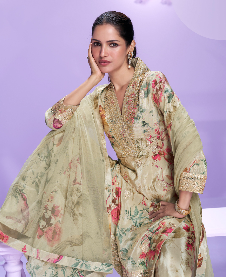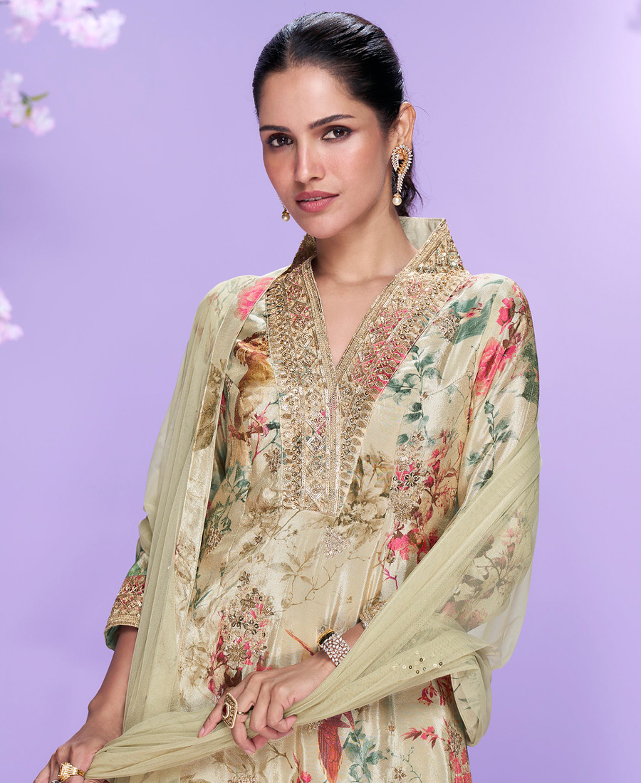 Work floral print with thread sequin embroidery
