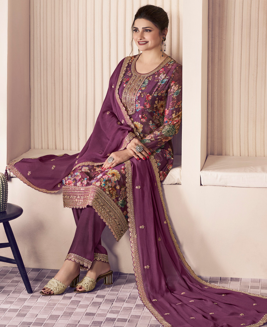 Be the first to review “Floral Printed Magenta Long Suit For Women Chinon Fabric”