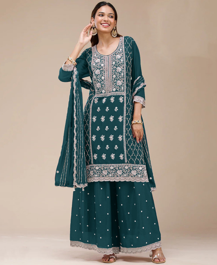 Be the first to review “Georgette Based Rama Green Palazzo Suit For Women”
