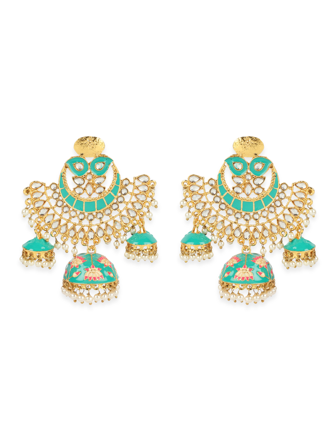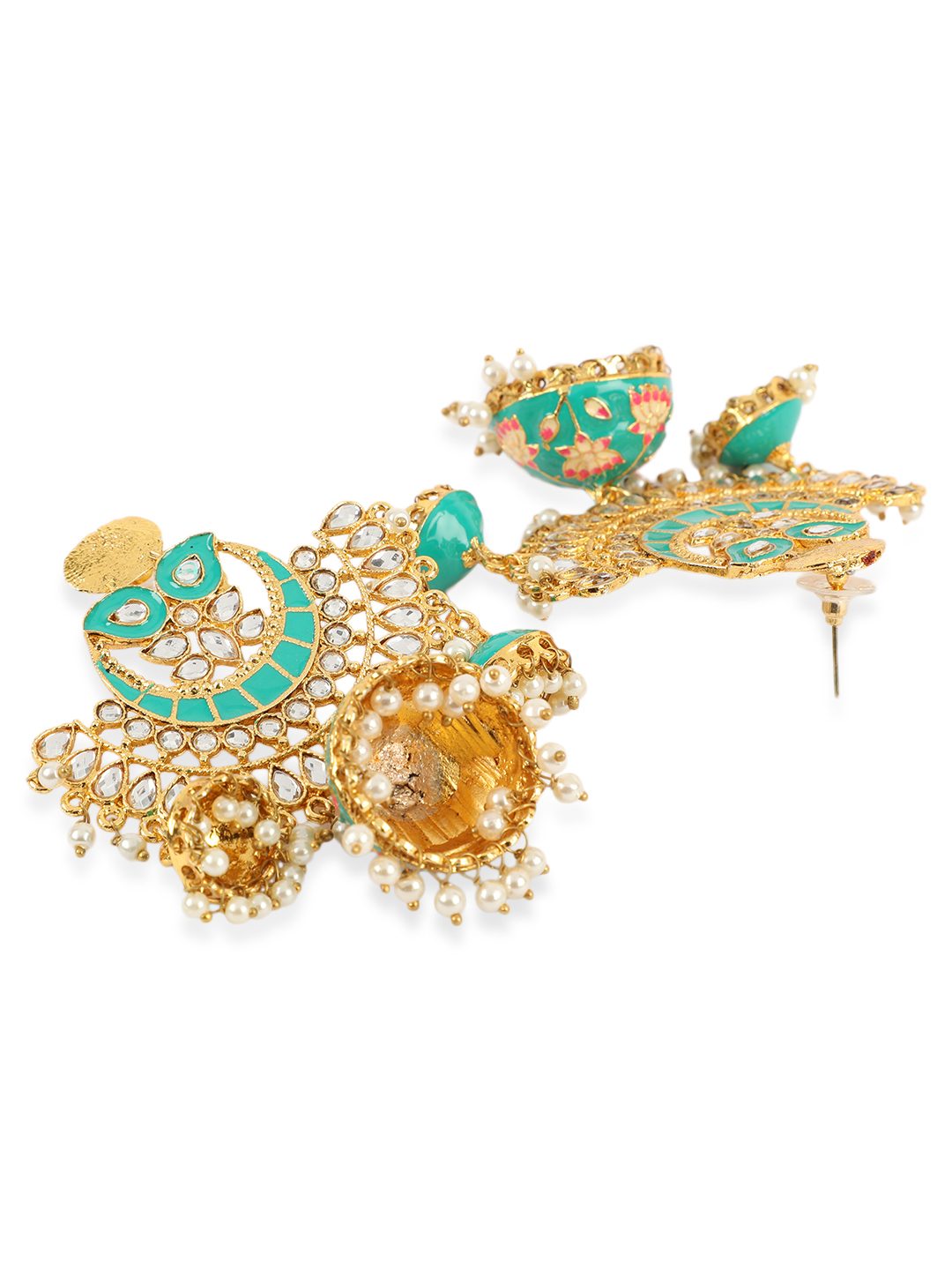 Gold Plated Traditional Square Jhula Type Meenakari Jhumka Earring-Onesize-Green