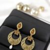 Gold stones studded Gold plated Enamelled chandbaali earring with pearl drops
