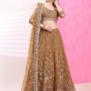 Embrace royal elegance with the Golden Oasis Embroidered Bridal Lehenga, a masterpiece that radiates grandeur and timeless charm. Crafted from premium net fabric, this lehenga features intricate zari, resham, and sequin embroidery inspired by royal Mughal architecture motifs. The luxurious golden hue adds a regal glow, making it perfect for brides who wish to exude sophistication and grace.