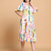 Soft Cotton Floral Print Midi Dress with Relax Fit and Tiered Pattern, lightweight comfortable fabric, ideal for office wear, outings, holidays and everyday fashion.