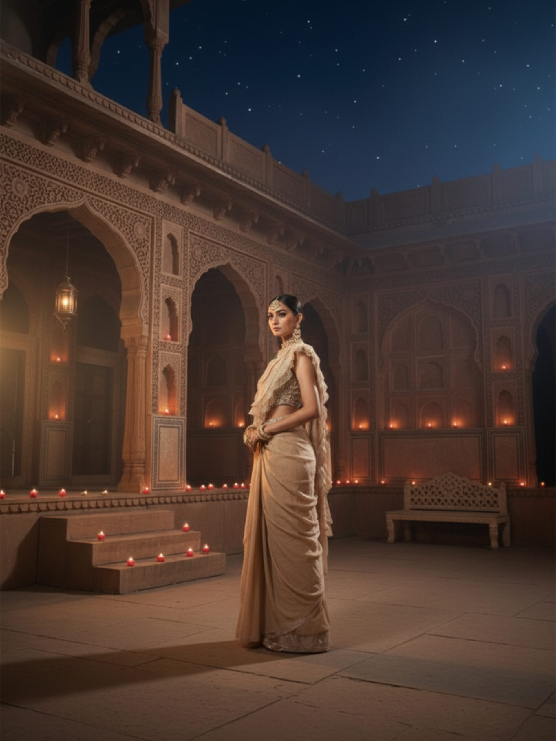 Be the first to review “Ivory Gold Embellished Draped Saree”