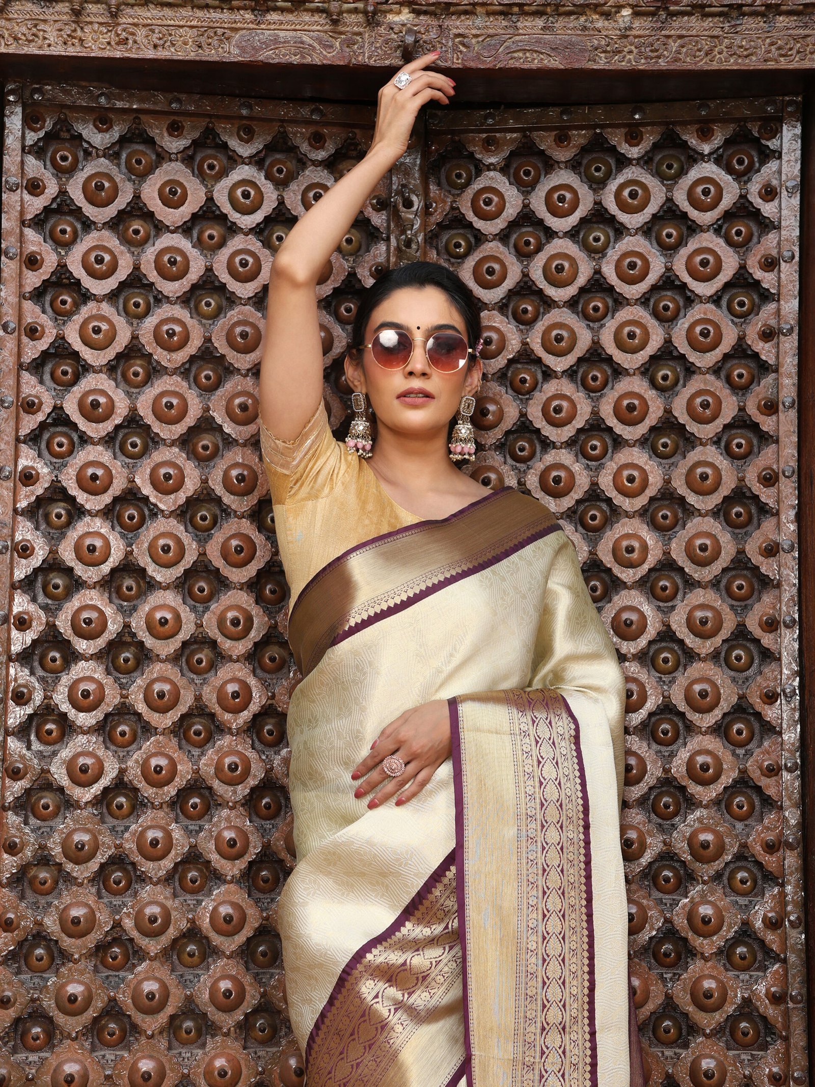 Elegant JACQUARD saree in CREAM color, size 6.5 METERS.