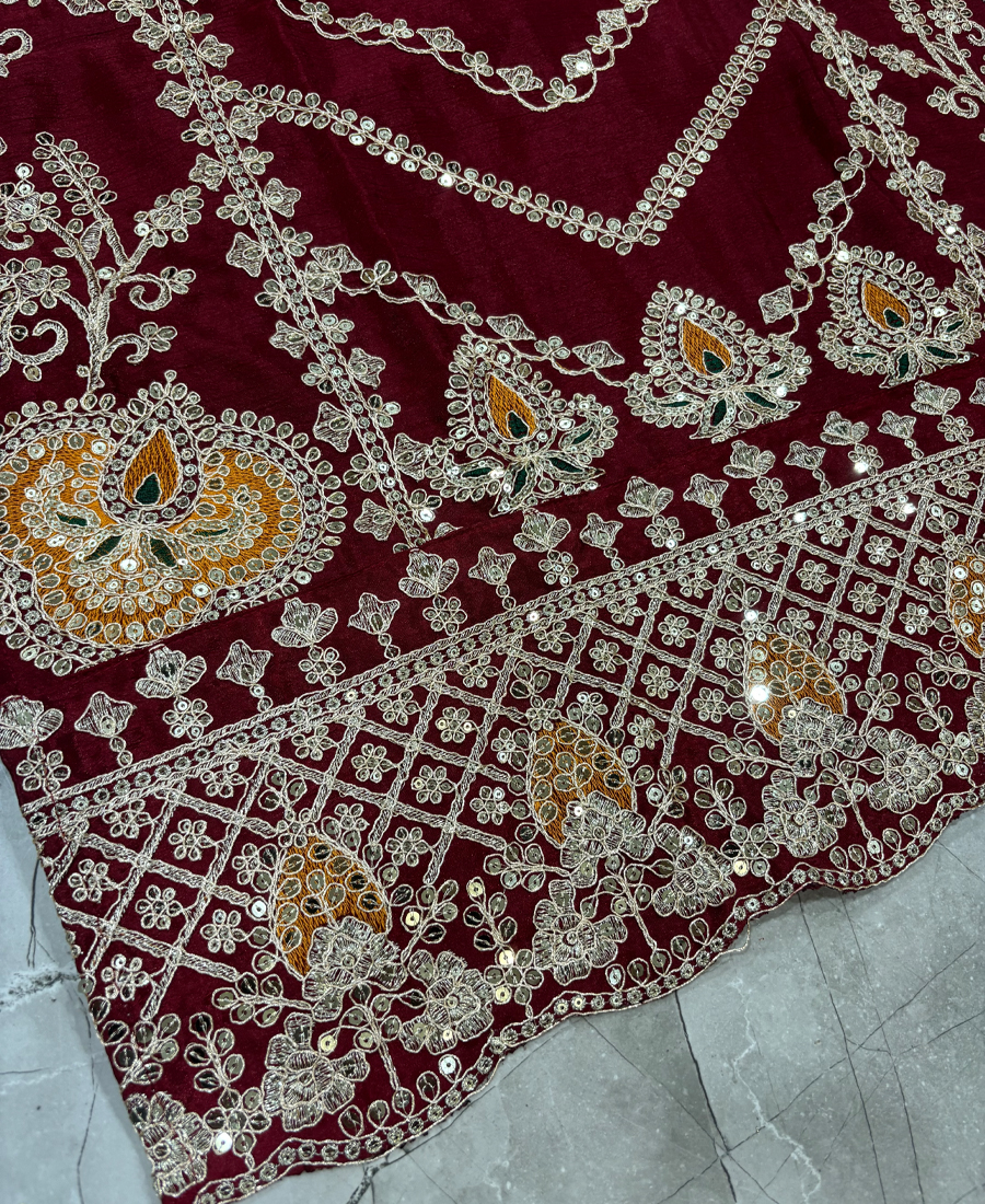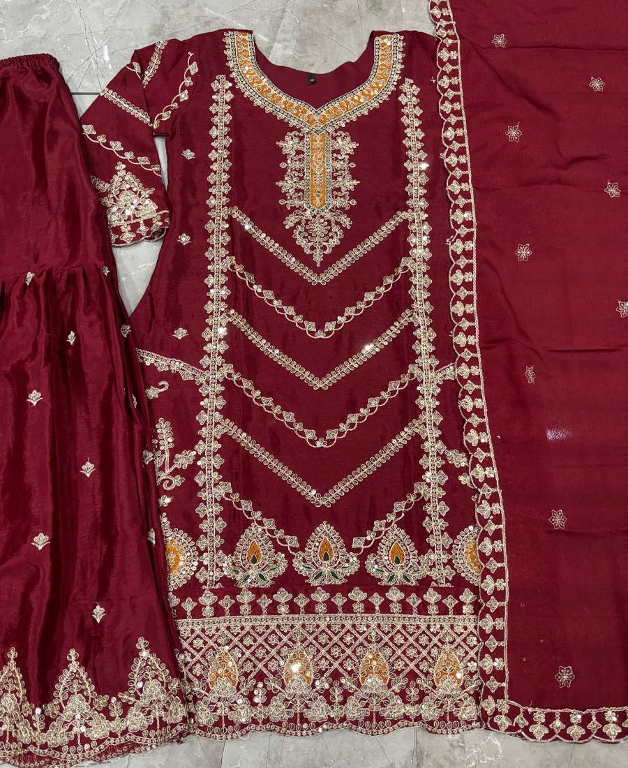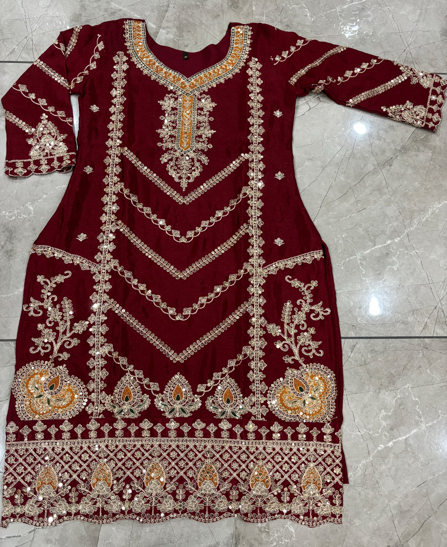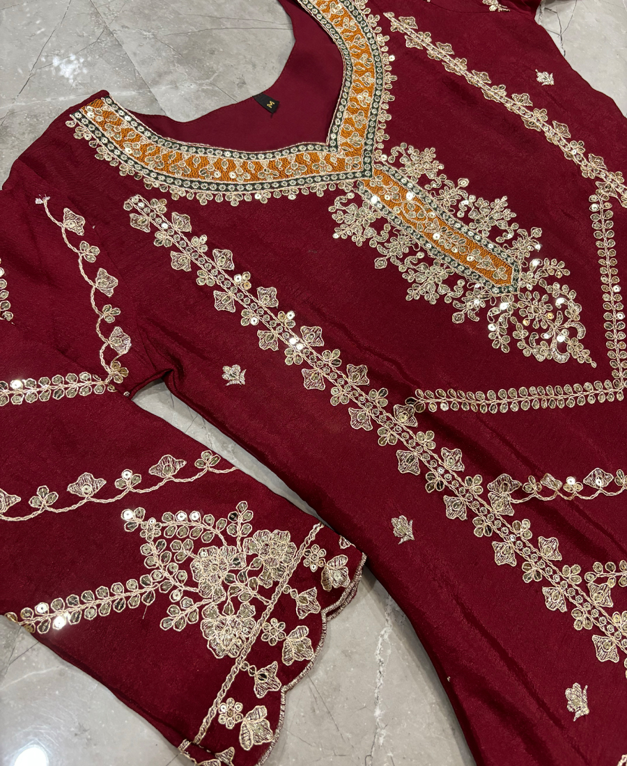 Be the first to review “Maroon Chinon Straight Suit For Women Wear”
