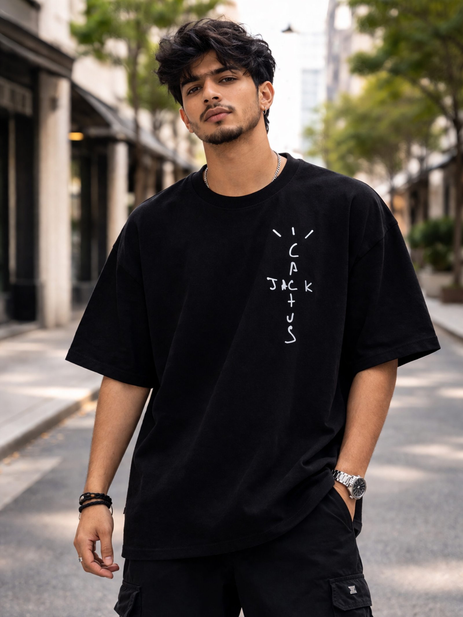Men’s Black Oversized ‘Cactus Jack’ Peace Quote T-Shirt