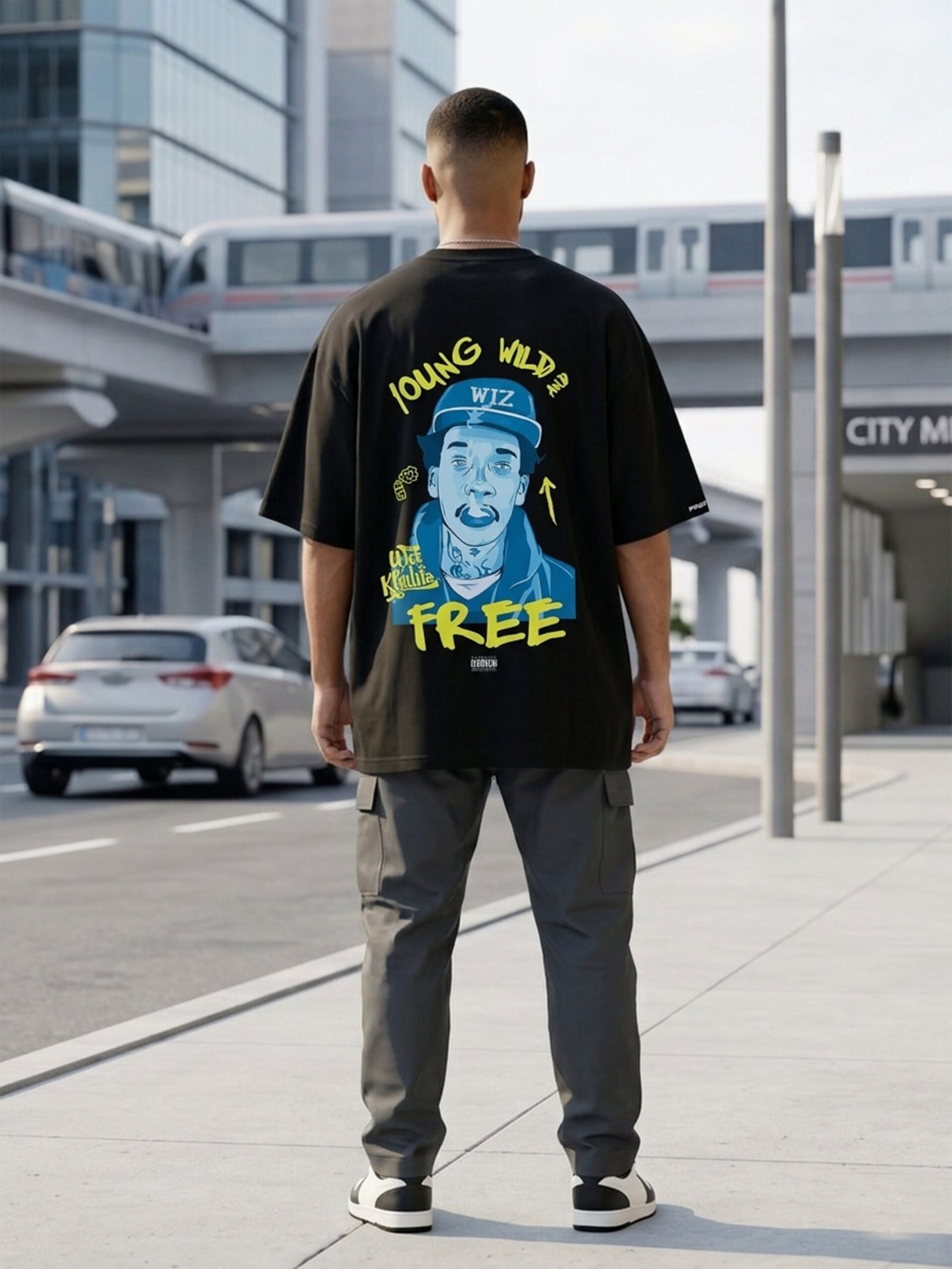 Celebrate West Coast hip-hop culture with this bold oversized graphic tee. The front chest sets the mood with bright yellow “YOUNG WILD FREE” typography. The back serves as a massive canvas for a highly detailed, colorful pop-art illustration of rap legend Snoop Dogg. Crafted from premium black cotton with a relaxed, drop-shoulder fit, it’s a comfortable and iconic staple for any streetwear enthusiast.