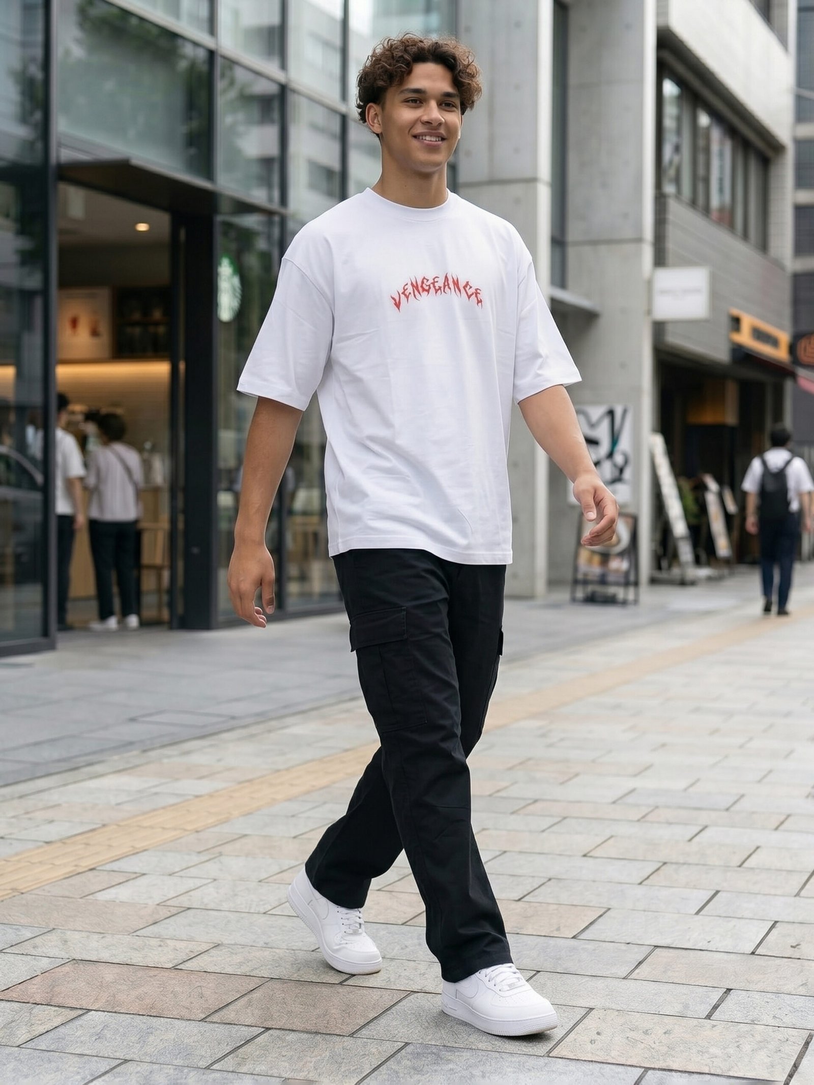 Channel Saiyan pride with this striking white oversized anime tee. The front keeps the intensity high with red, jagged “VENGEANCE” typography arched across the chest. The back pays a massive tribute to Prince Vegeta, featuring a detailed character illustration surrounded by crackling red energy. Cut with a modern drop-shoulder silhouette, this t-shirt merges high-octane anime energy with everyday streetwear comfort.