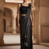 Midnight Black Shimmer Pre-Draped Saree with Embellished Sleeveless Blouse