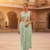 Be the first to review “Mint Green Ruffle Pre-Draped Saree with Embellished Sleeveless Blouse”
