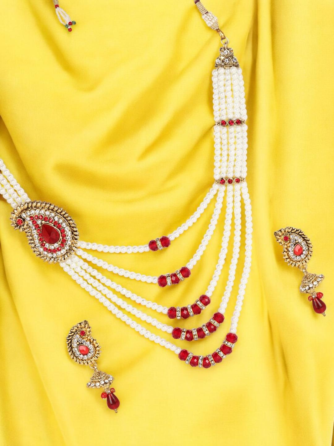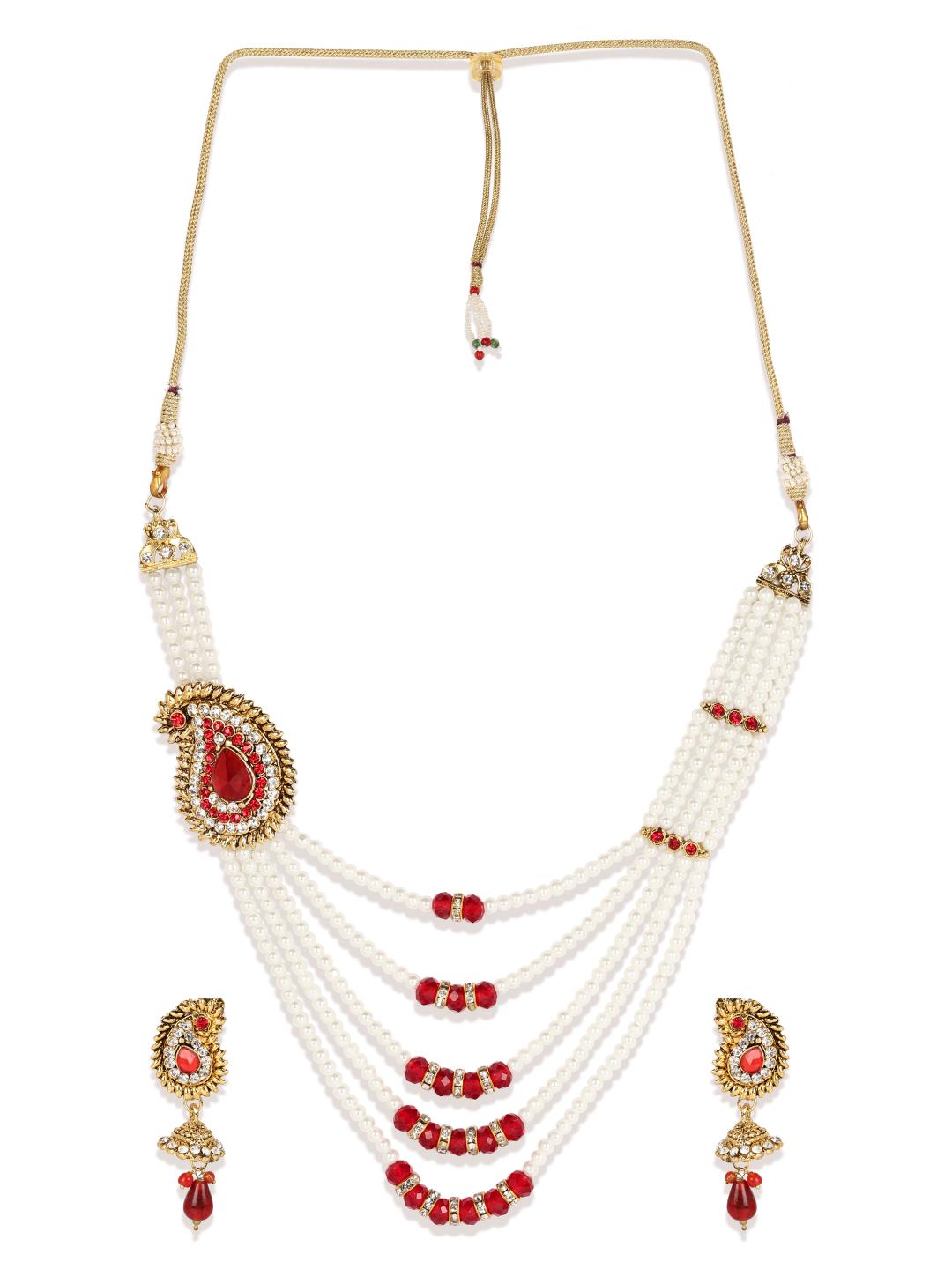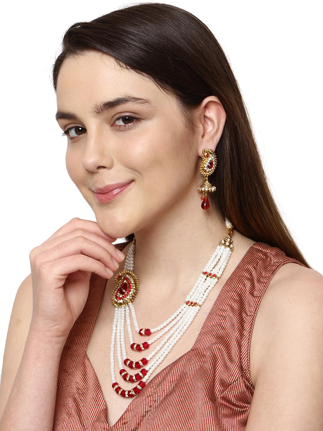 Multi Strand Pearl Strings Gold Plated Side Broch Long Necklace , Closure: Draw String