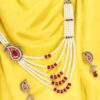Multi Strand Pearl Strings Gold Plated Side Broch Long Necklace