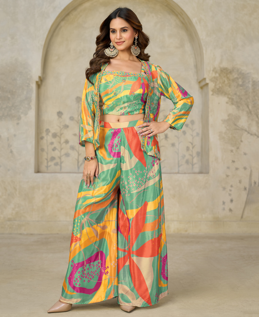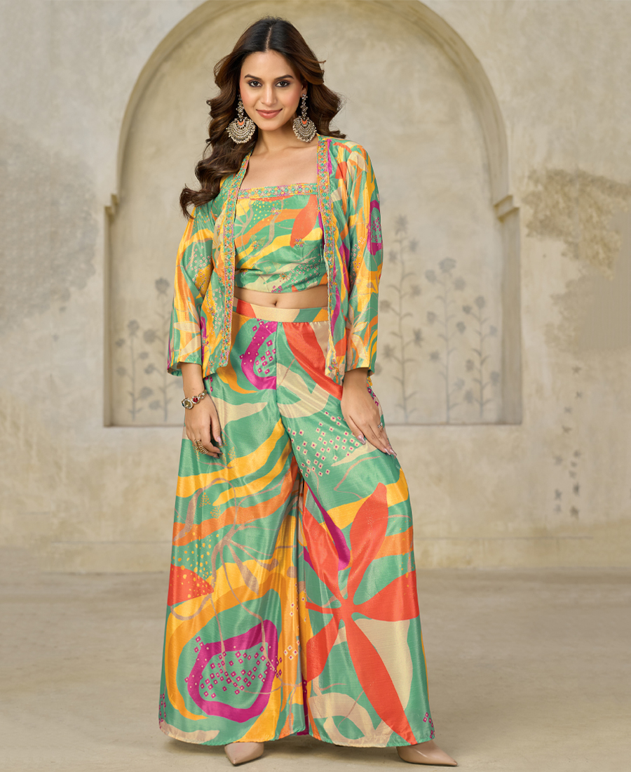 work abstract print with embroidery work
