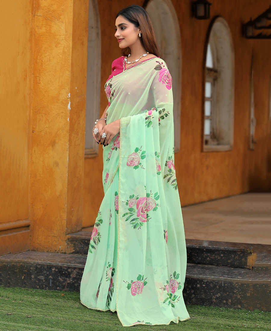 Work floral print with hand work finish
