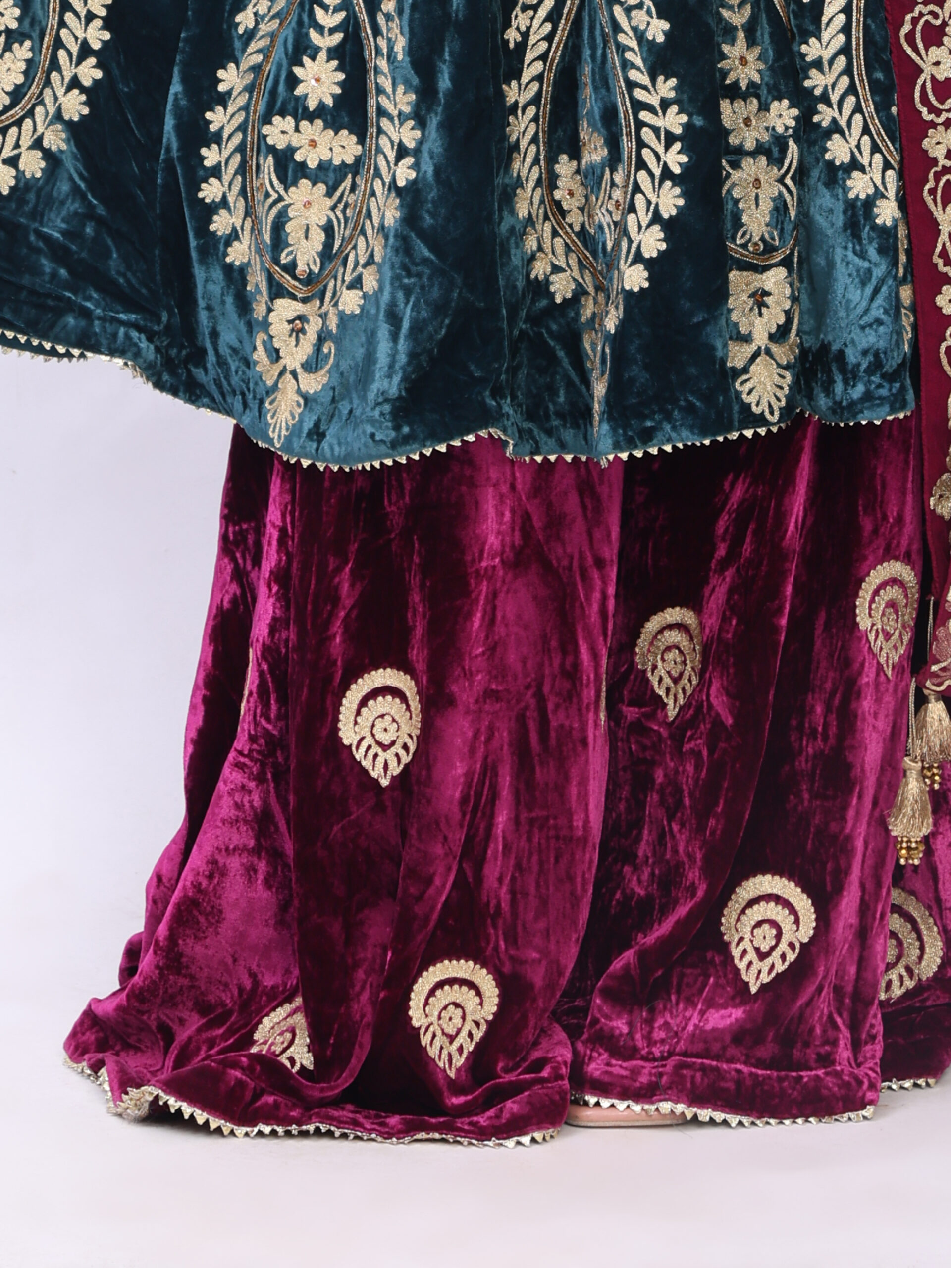 Noor-e-Bagh Hand-Embroidered Velvet Kurta Sharara Set