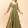 Step into timeless elegance with our Olive Gold Silk Shine Anarkali Gown, a perfect blend of sophistication and grace. Crafted from luxurious silk fabric with a subtle golden sheen, this gown radiates festive charm and regal appeal. The full-length flared silhouette adds a majestic flow, while the long sleeves and square neckline exude understated refinement. Ideal for festive occasions, weddings, or evening celebrations, this Anarkali gown captures the essence of traditional beauty with a modern touch. Pair it with statement earrings and embroidered juttis to complete your elegant ethnic look.