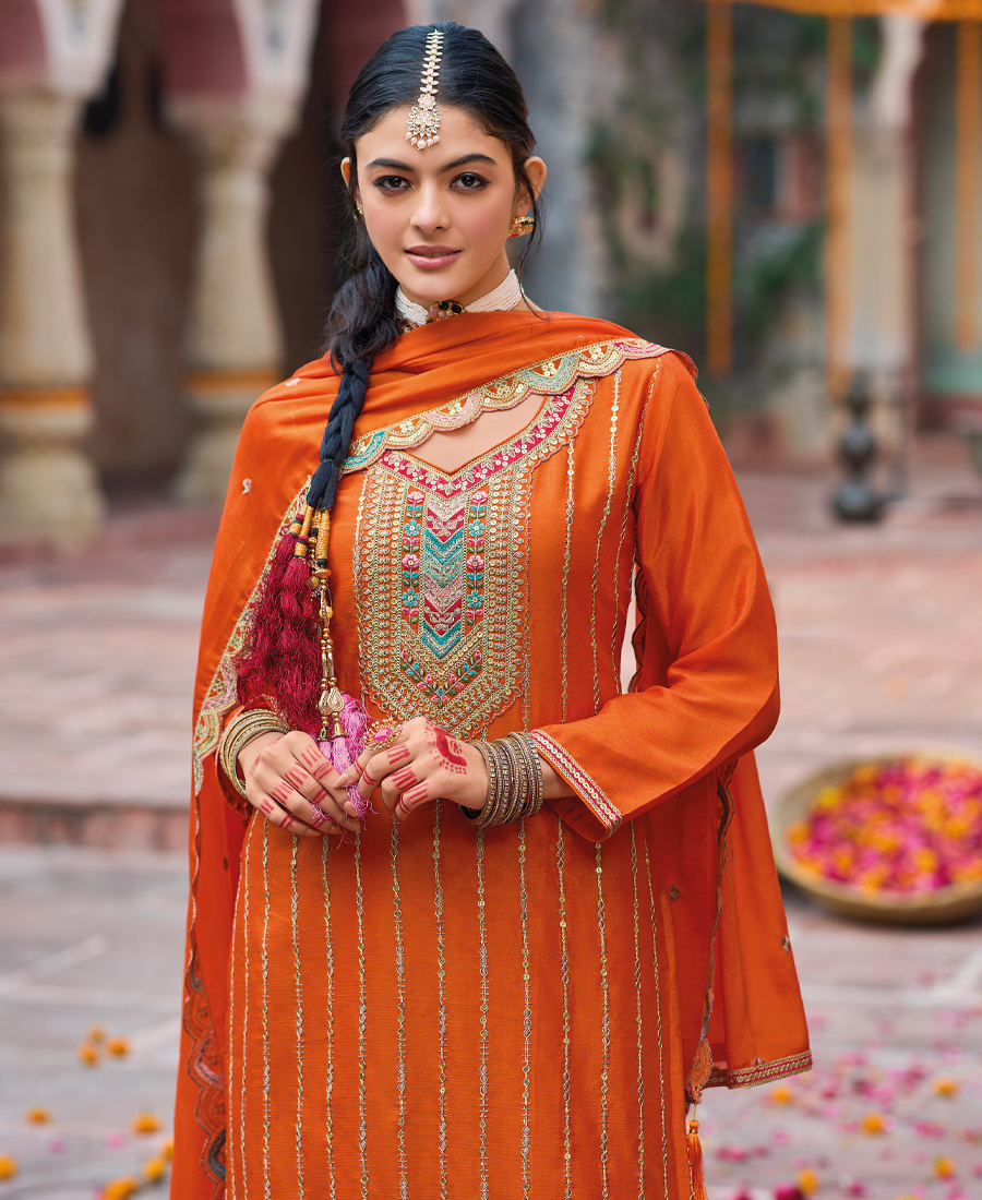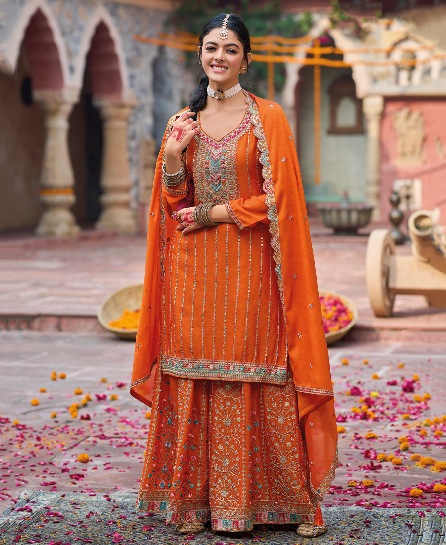 Work traditional multi thread sequin dori embroidery work