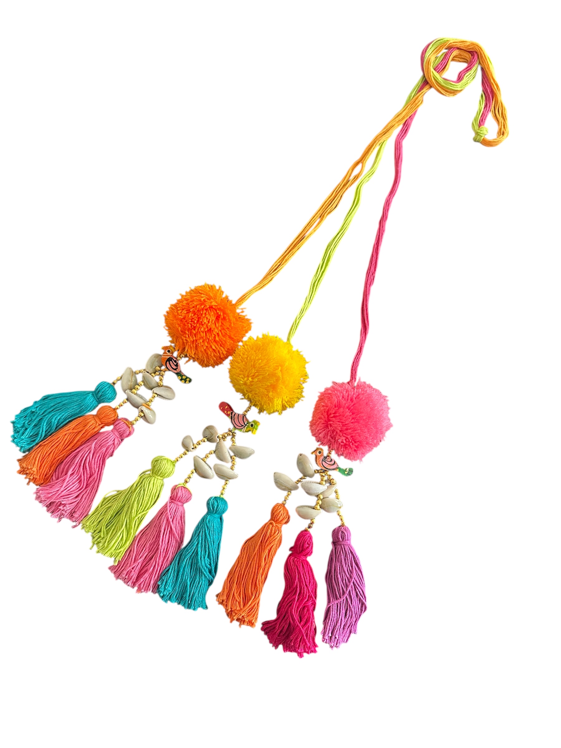 Vibrant Pom-Pom Tassels – Soft, playful pompoms crafted in bright shades radiate joy and style.