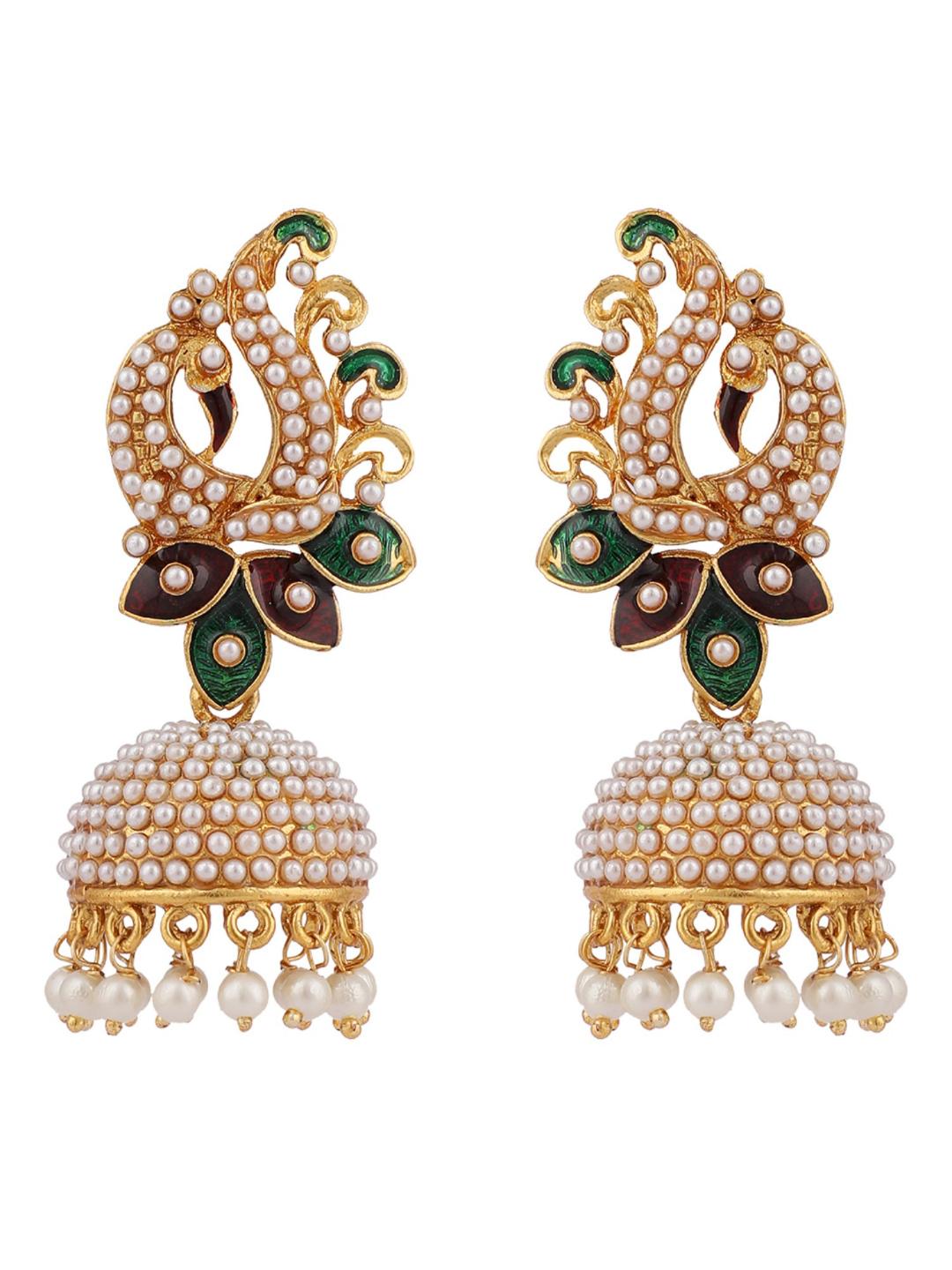 Gold Plated & White Enamelled Peacock Shaped Jhumkas