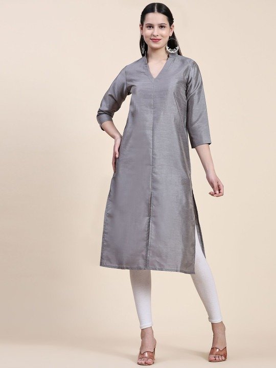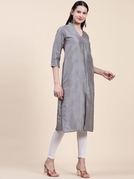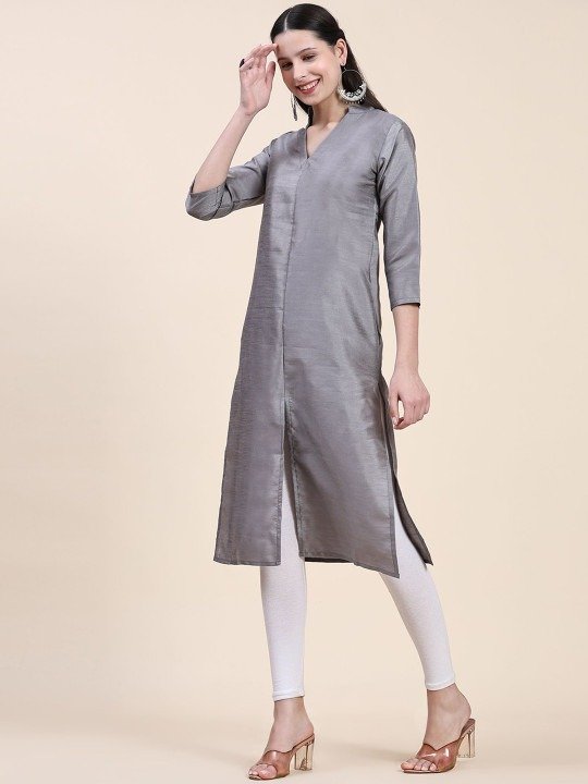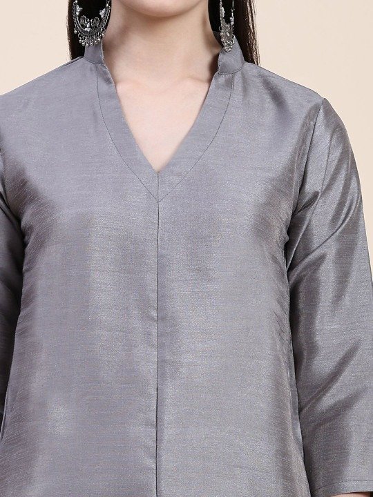 Phenav Mandarin Collar Dupion Silk Gray Kurta