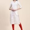 Phenav Mandarin Collar Dupion Silk Straight Off White Kurta