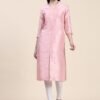 Phenav Mandarin Collar Dupion Silk Straight Pink Kurta