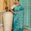 Elegant PRINT saree in RAMA GREEN color, size 6.5 METERS.