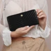 Quilted Black Zip Around Purse
