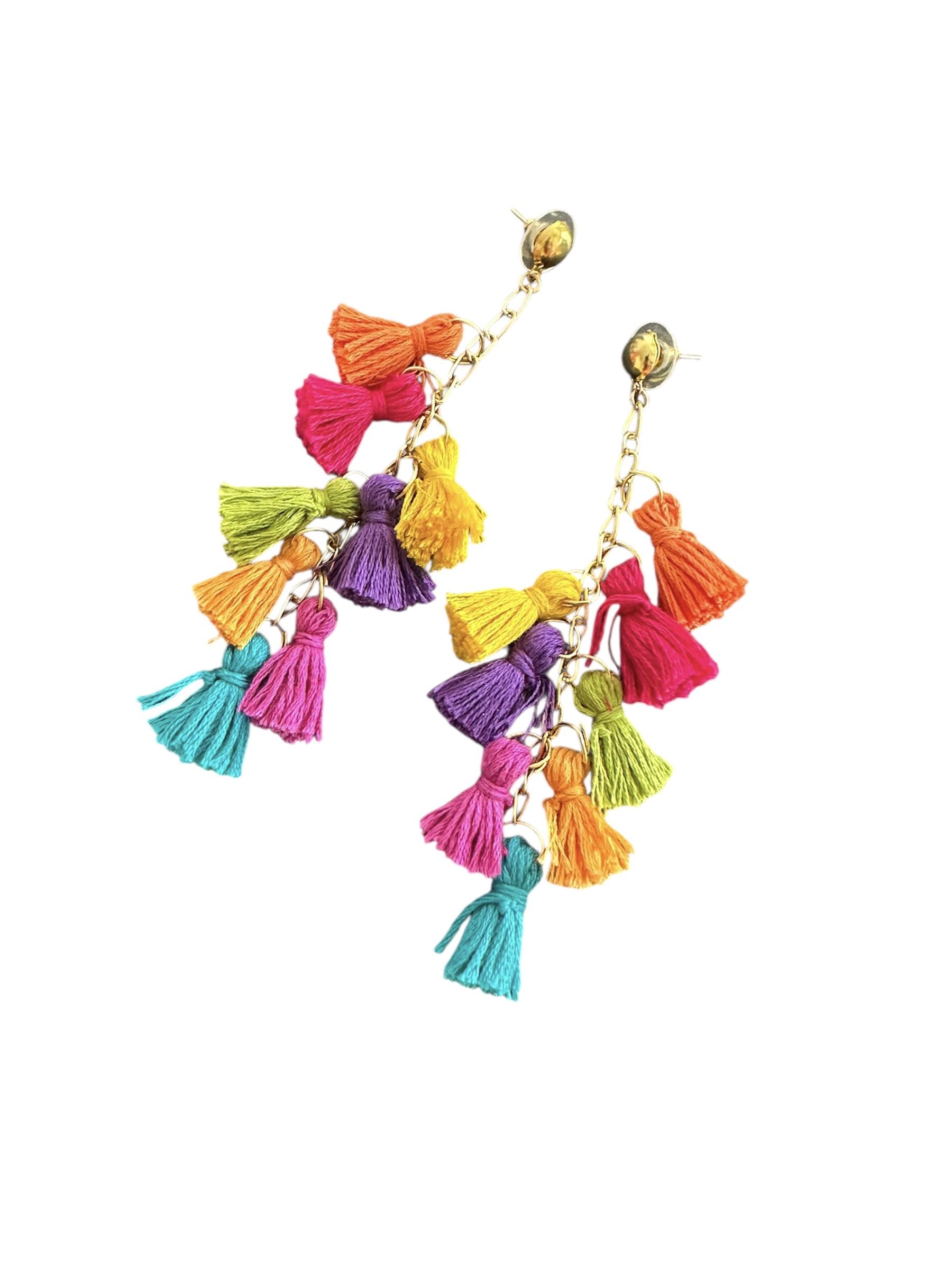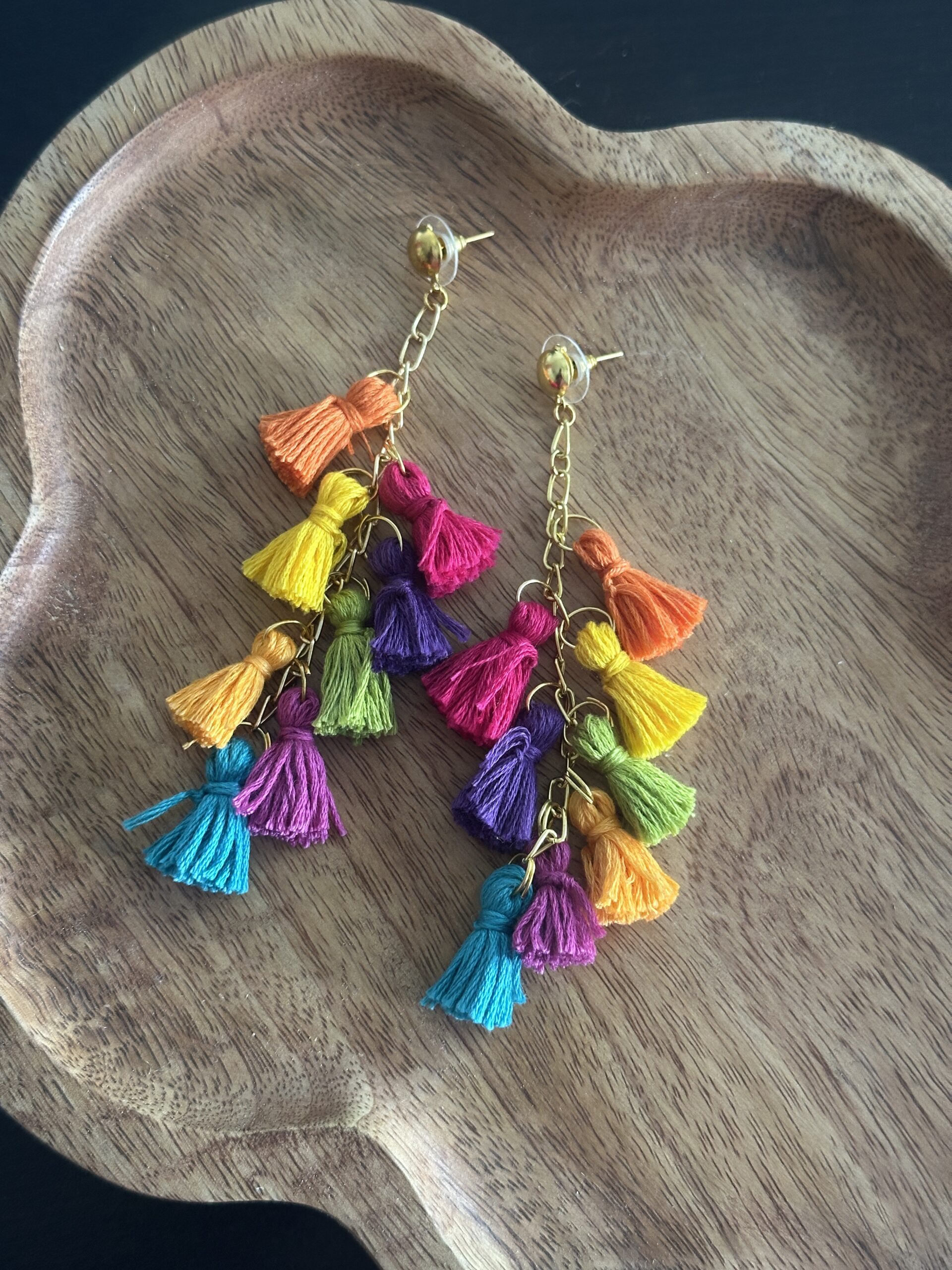 Quirky and colourful lighweight danglers with cute mini tassles.