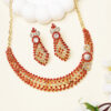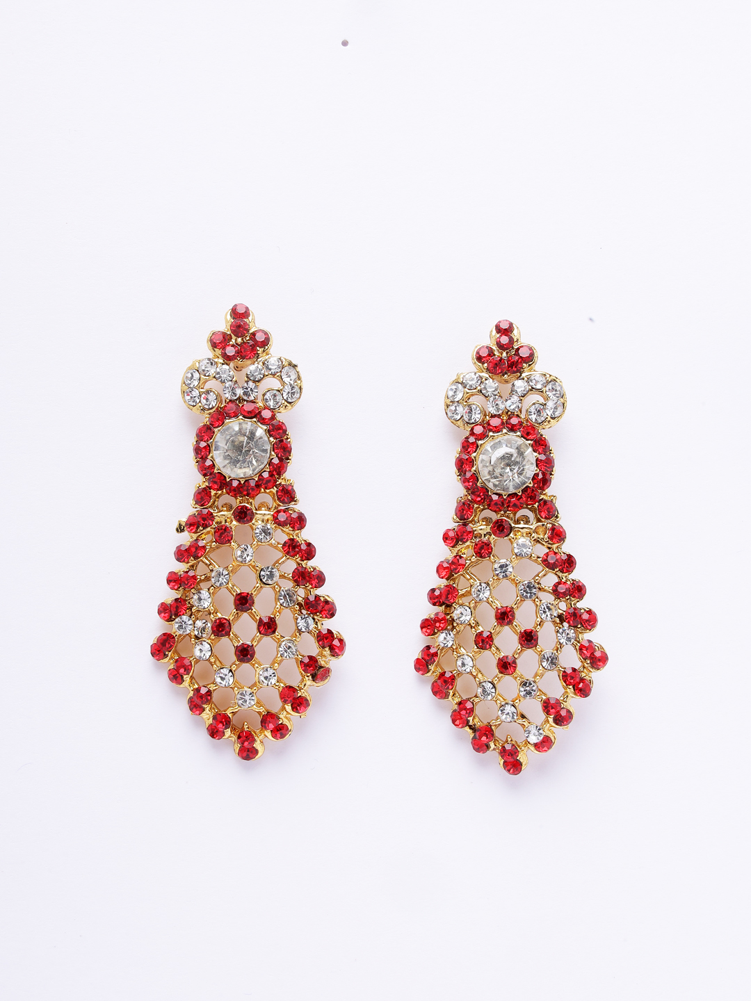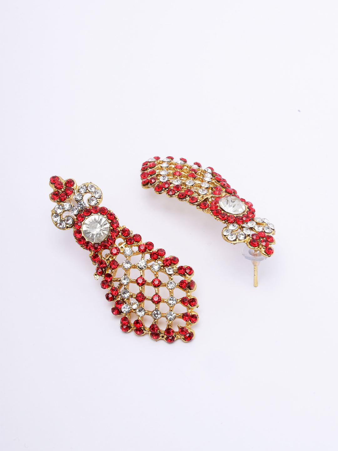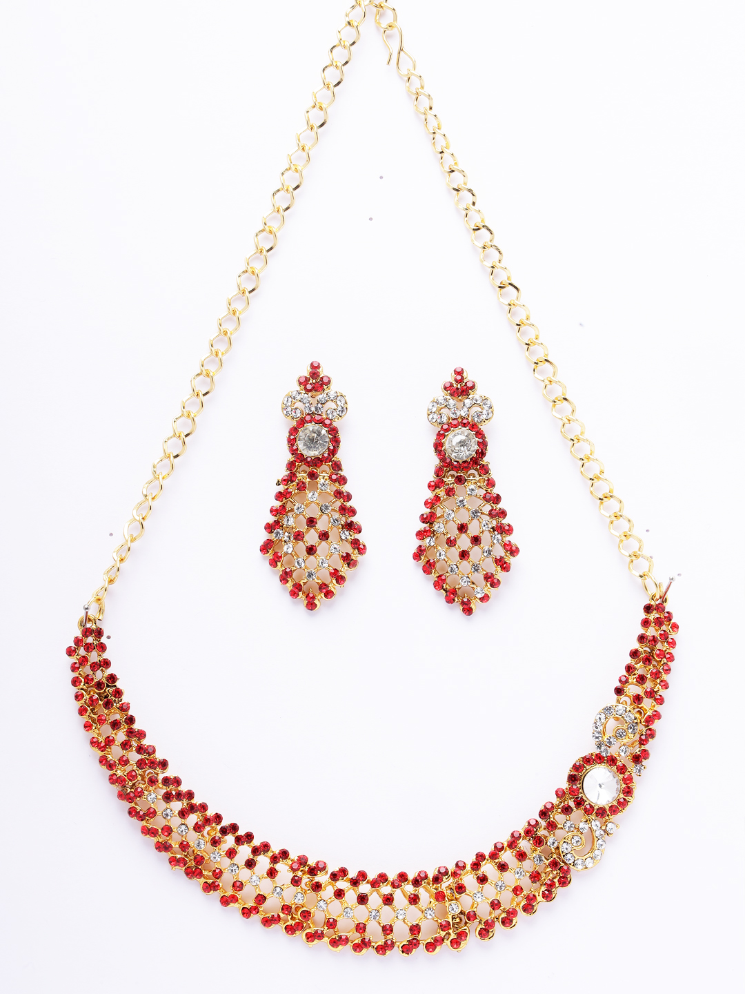 Red floral cubic zircornia gold plated sleek necklace with beautifull drop earrings, secured with s-hook closure. Goes with all indian and indo-western outfits