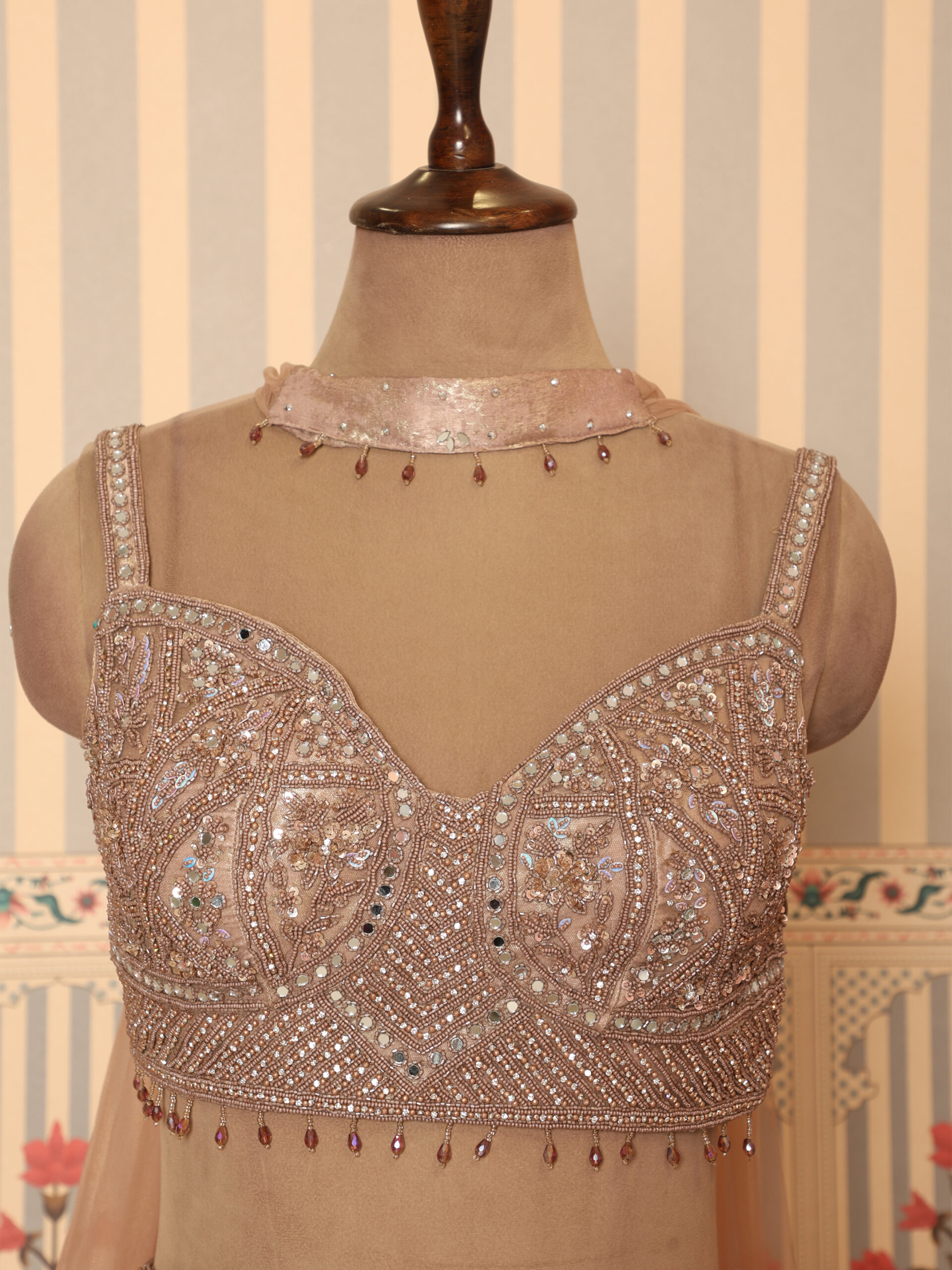 Intricately embellished sleeveless blouse