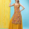 Step into the world of vibrant elegance with our Sunshine Glam Hand-Embroidered Kurta Sharara Set, a stunning blend of traditional artistry and modern charm. This bright mustard-yellow ensemble radiates festive joy, making it the perfect pick for haldi, mehendi, or daytime celebrations. The sleeveless kurta is intricately hand-embroidered with multi-coloured threadwork and delicate bead detailing that beautifully showcases rich paisley patterns. Each stitch reflects craftsmanship and luxury, creating a timeless piece that captures the essence of Indian festive wear.